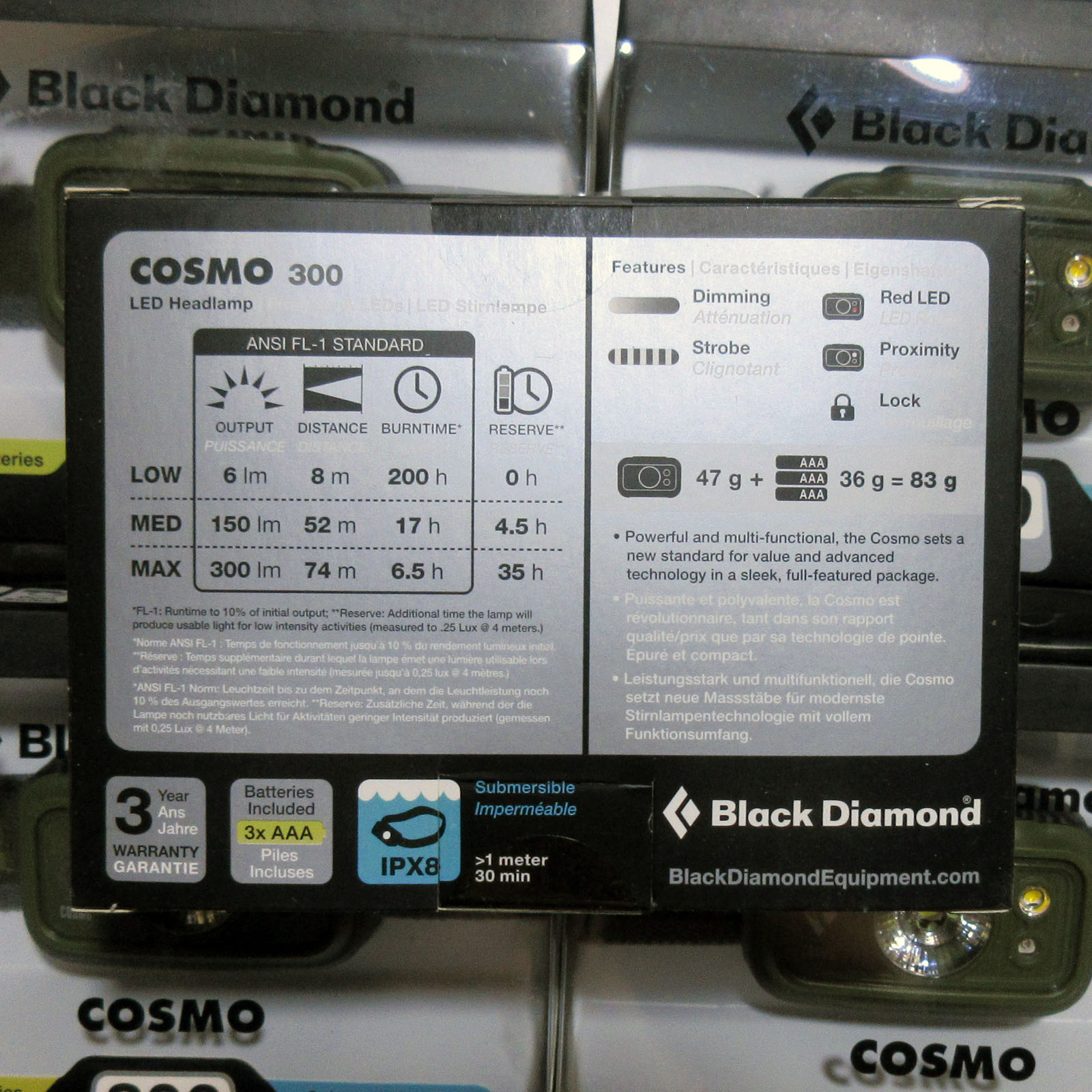 Потужний ліхтарик на 300 люмен від відомого бренду Black Diamond. Корпус з захистом від вологи IPX8, витримує занурення у воду на глибину в один метр до 30 хвилин. Режими ближнього, дальнього, червоного світла, стробоскоп та блокування від випадкового вмикання. Оновлена оптична ефективність забезпечує більш яскраве світло на 300 люмен, та економить час роботи батарей. Можливість регулювання потужності / дальності променя світла від 8 до 74 метрів. Час роботи: 6 лм - 200 год, 150 лм - 17 год, 300 лм - 6,5 год. Вага: 83 грами разом з трьома батареями ААА (в комплекті). Призначення: туризм, походи в гори, кемпінг, подорожі. Новий. Оригінал