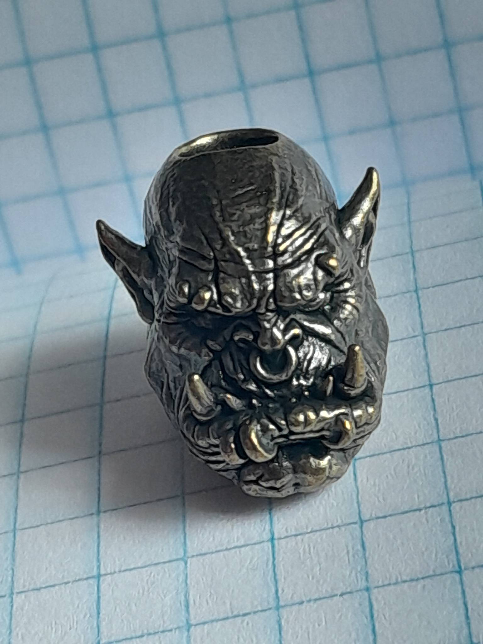 Оригінальна намистина у вигляді Орка з пірсингом — ідеальне доповнення для браслетів, паракорд-прикрас, ножових темляків чи брелоків. Виготовлена з мідного сплаву з ефектом старовини , надає виробу характеру та мужності.