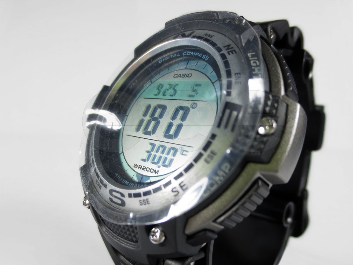 Водонепроникність 200 м. Люмінесцентне підсвічування. Функції: будильник, дата, день тижня, календар, компас, світовий час, секундомір, таймер, термометр (-10 ...+ 60 °C), 5 незалежних будильників. Кварцовий механізм. Точність ходу +/- 30 секунд на місяць. Морозостійкість до -10 °C/14° F. Полімерний ремінець з пряжкою. Мінеральне скло. Батарейка CR2025. Габарити 51.5 x 47.6 x 13.2 мм. Вага 55 грам. Комплектація: коробка, підставка, інструкція англійською. Новий. Оригінал