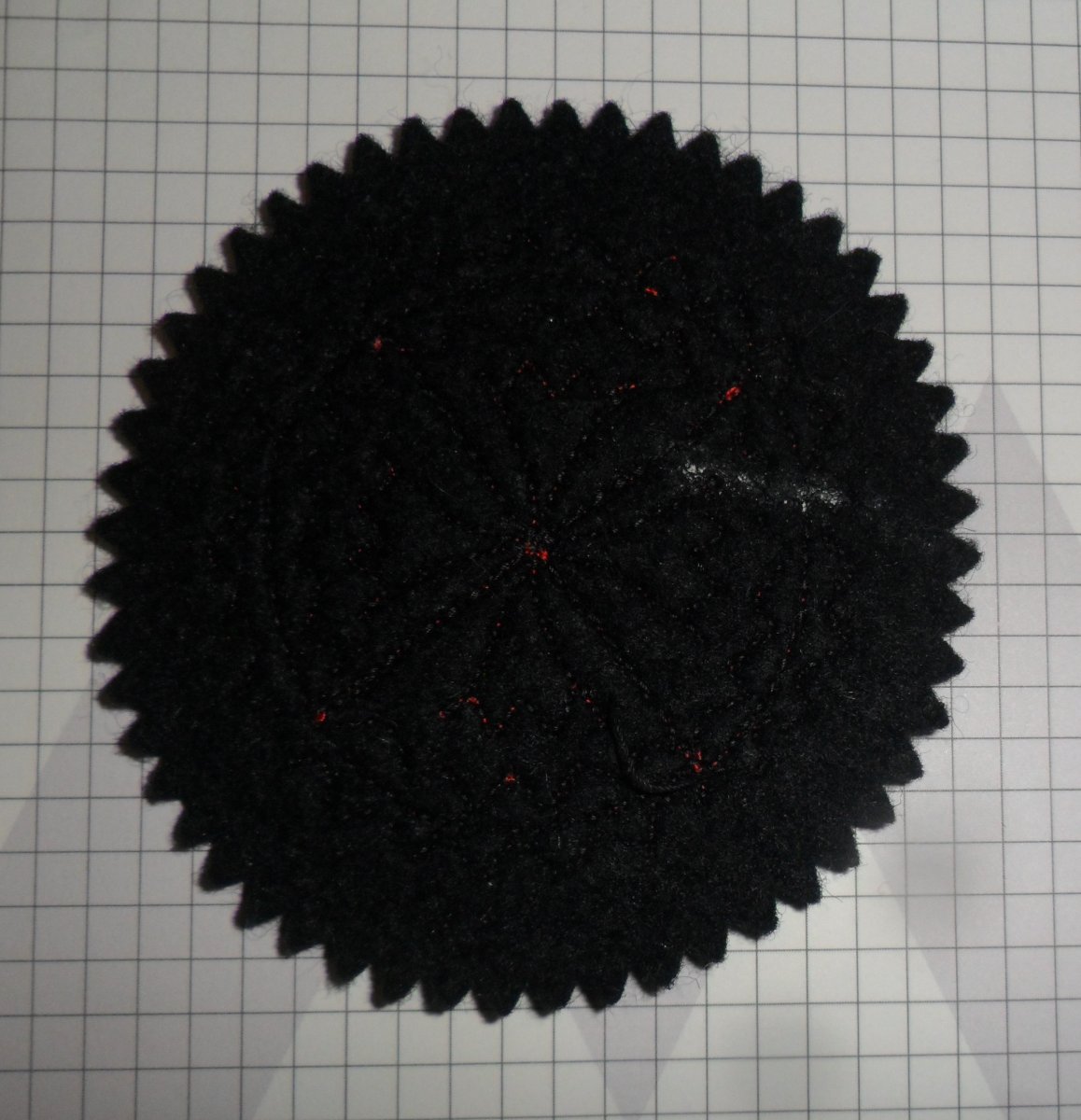 Нашивка кругла з зображенням рівностороннього червоного хреста в зубчастому колі на чорній основі.