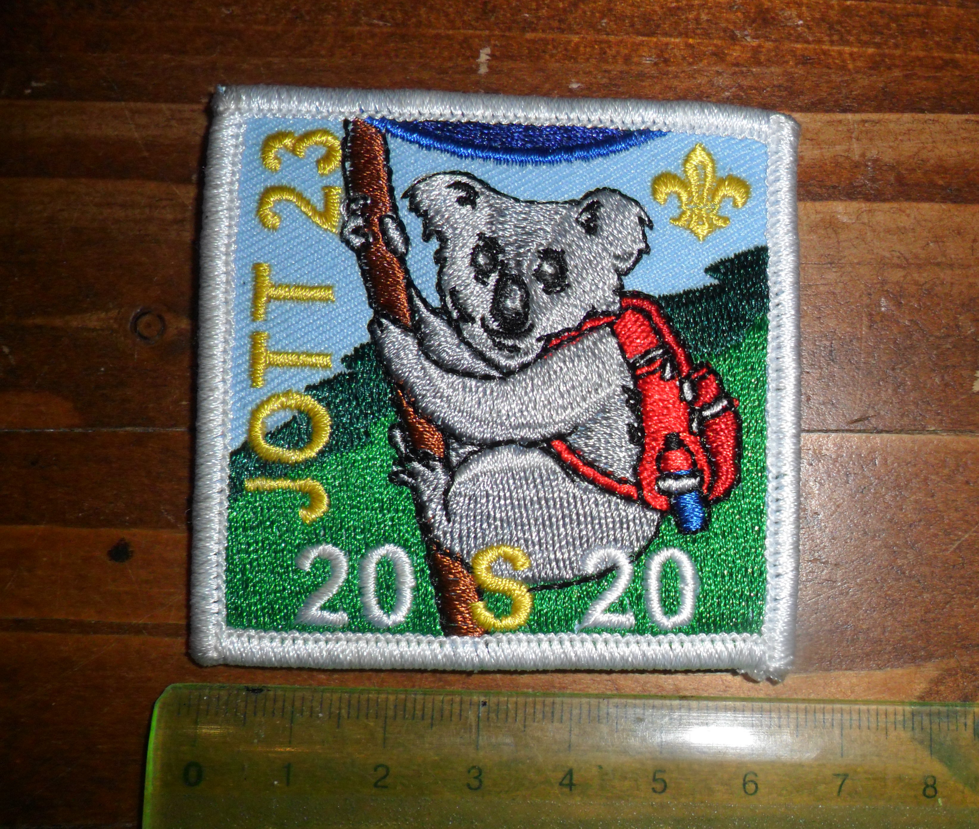 Нашивка скаутів JOTT 23 - Jamboree on the Trail (Джамборі на стежці) - щорічний день спільного походу Всесвітнього скаутського руху. "Scouts Walking Together World Wide - скаути крокують разом по всьому світу". Розмір 6,5х6,5 см.