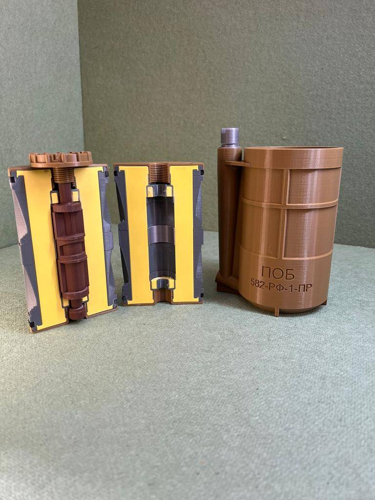 Навчальний макет новітньої російської міни ПОБ виготовлено за допомогою 3D-друку в натуральну величину, модель максимально деталізовано для ознайомлення з принципами роботи підривного механізму, що дозволяє проводити ефективні тренування від класної кімнати до поля бою.