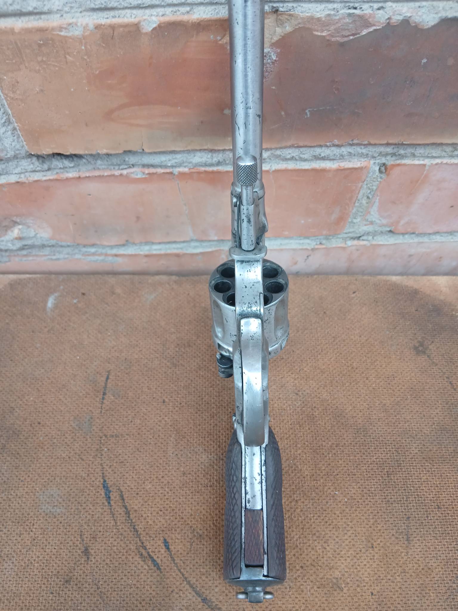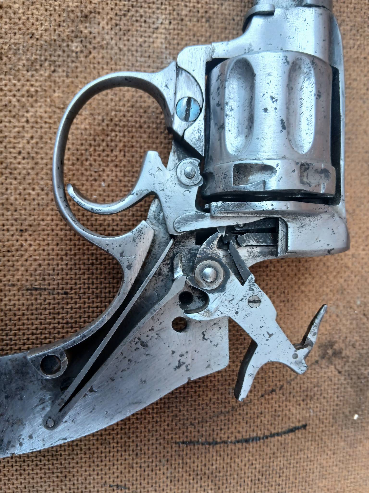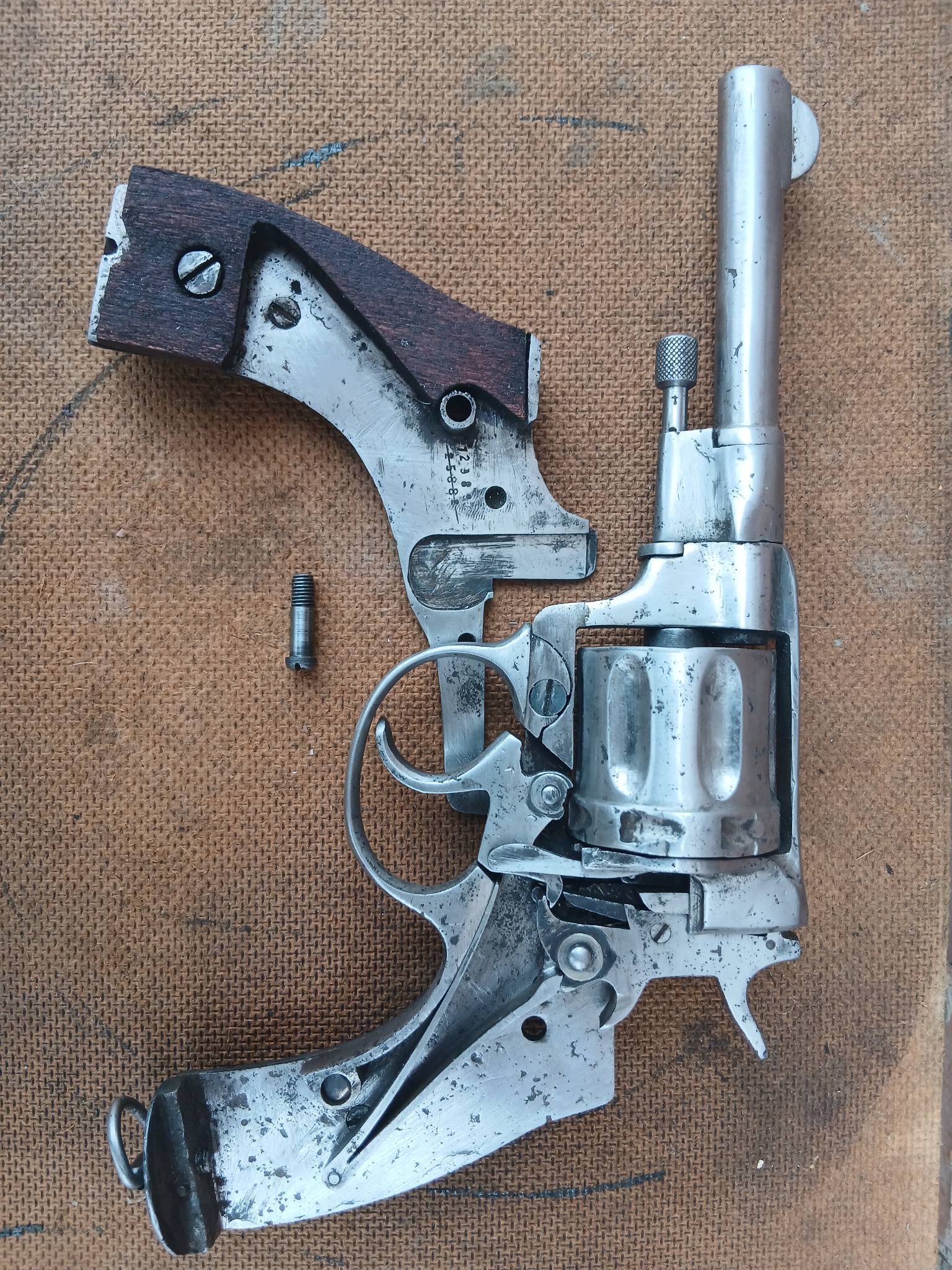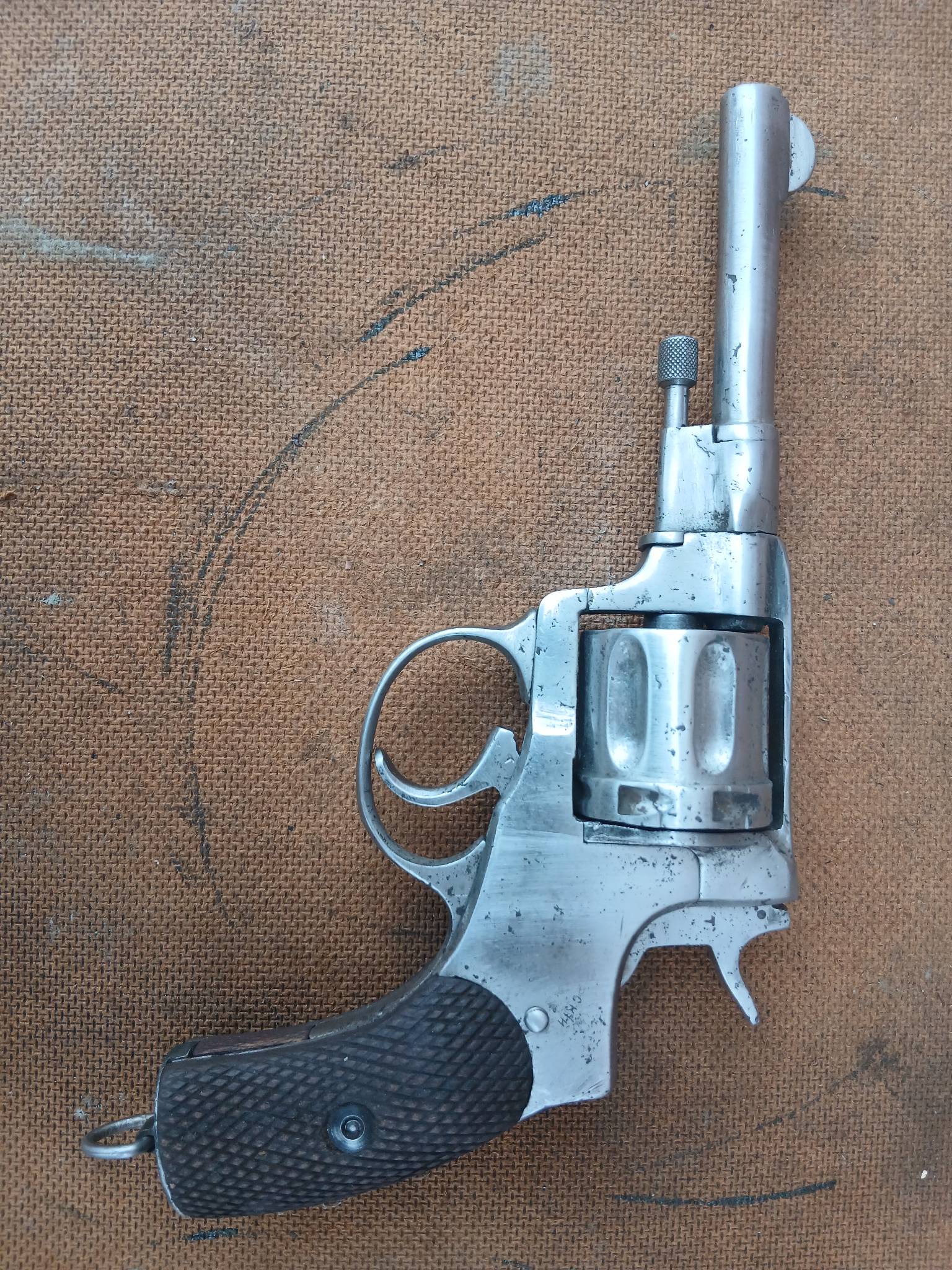 Наган в гарному вигляді не копаний.На кришці був надписТульського заводу але за ритвін була підварена і захищена.УСМ працює без проблем.Барабан прокручує всі сім разів.Пружина"бойова"нова а також шомпол і шомпольна з гвинтом.В коморах були набої від чого сохран гарний.Трубка залита м'яким металом.
