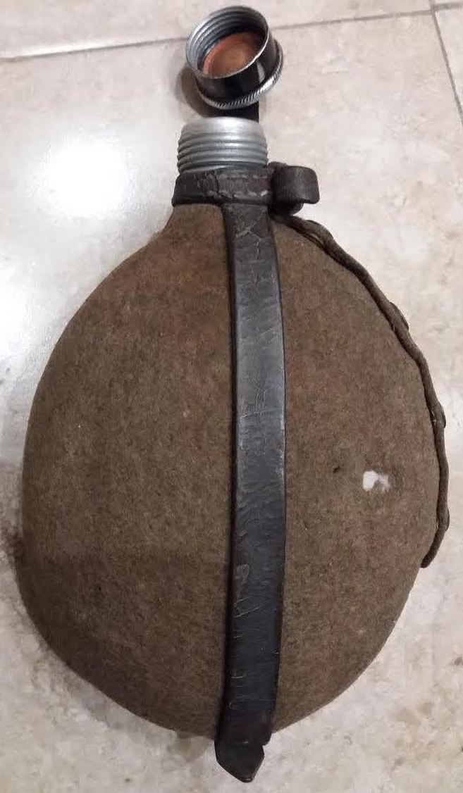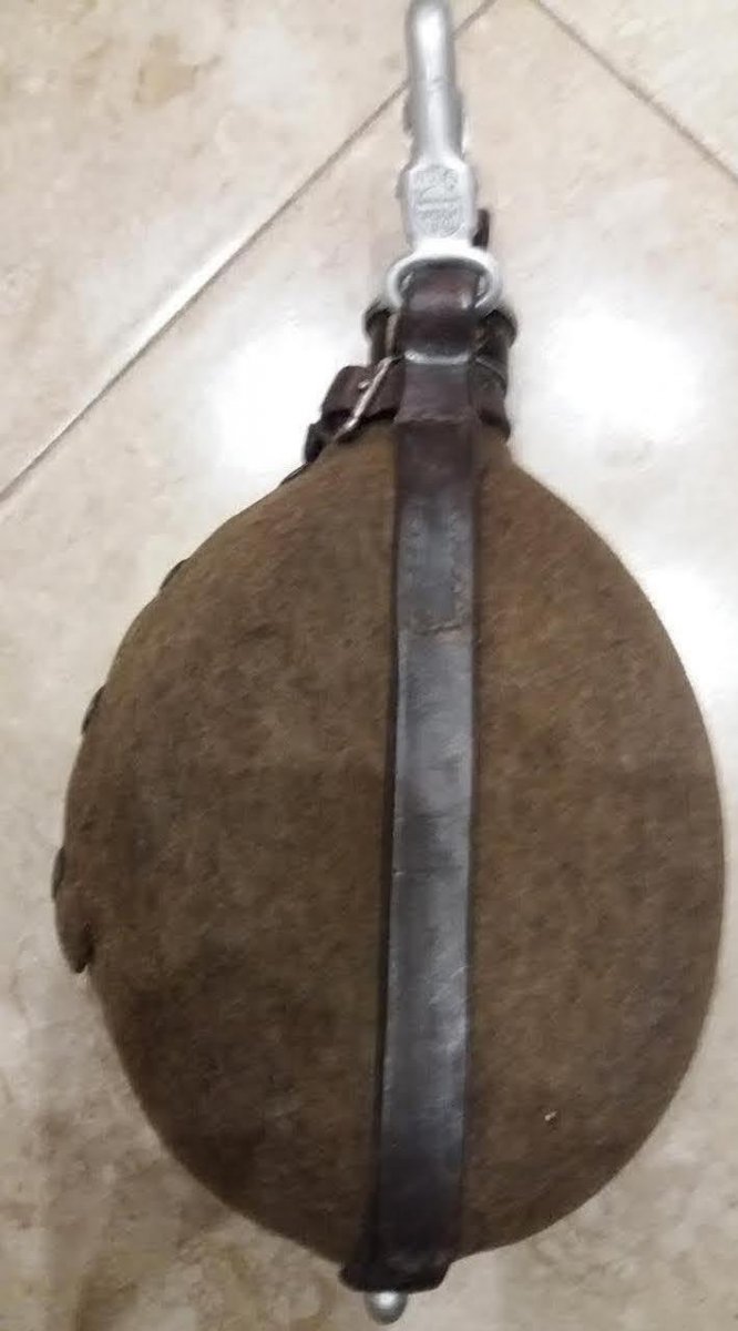 Немецкая фляга, на чехле есть дырочка, пуговки в отличном состоянии, фляга не течет, кожа на обвесе хорошая, клеймо MKL 38 на крышке и на фляге.
