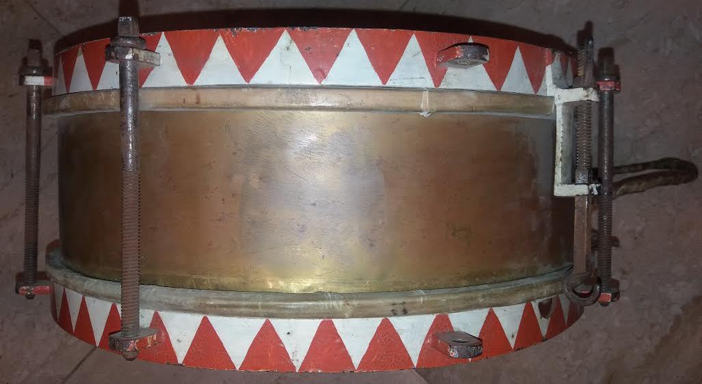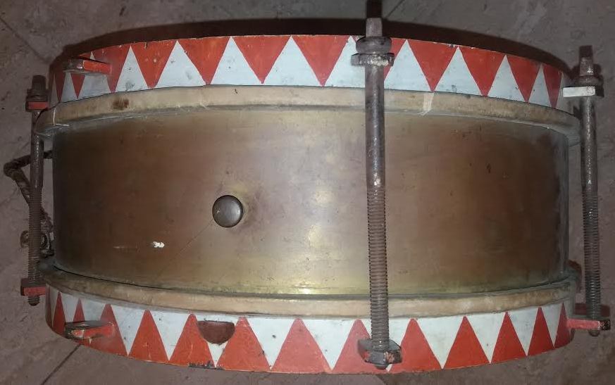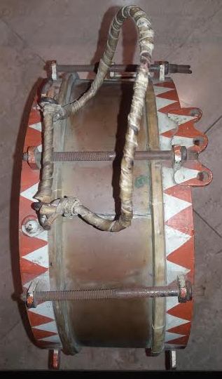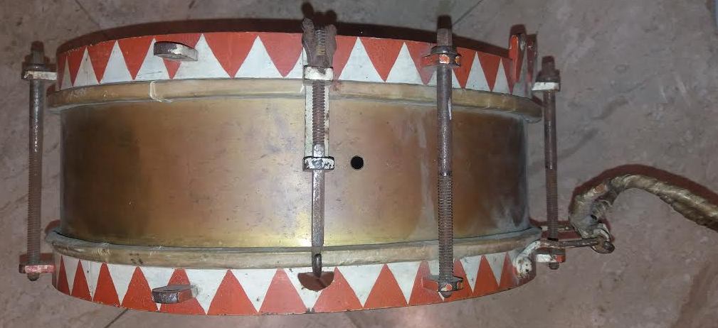Немецкий парадный барабан в металлическом корпусе с одной стороны порванный, отсутствуют детали, смотрим фото. Вещь не частая!