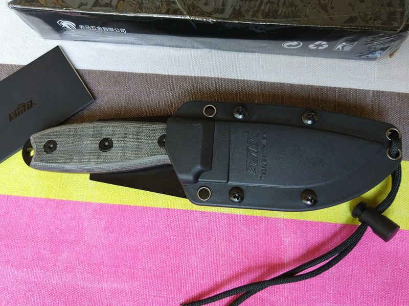 Комплектация: нож, ножны, установленная на ножны съемная стальная клипса, «набор «бумаг от производителя», коробка.