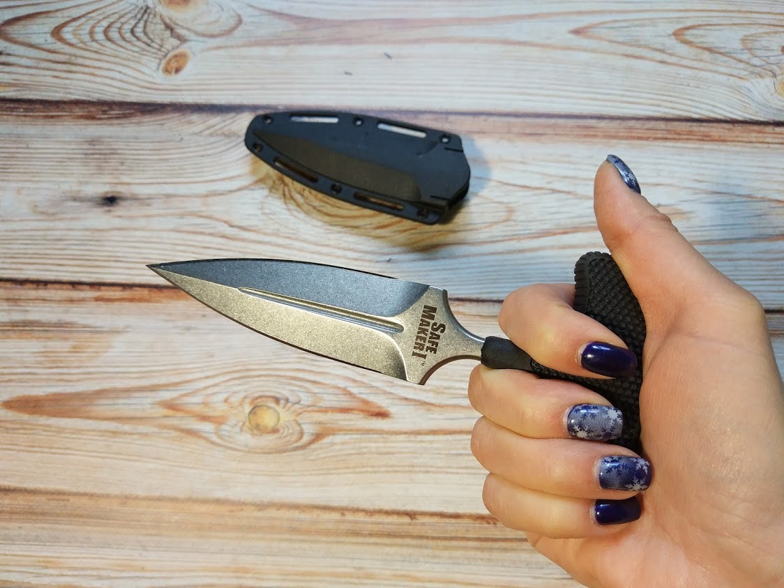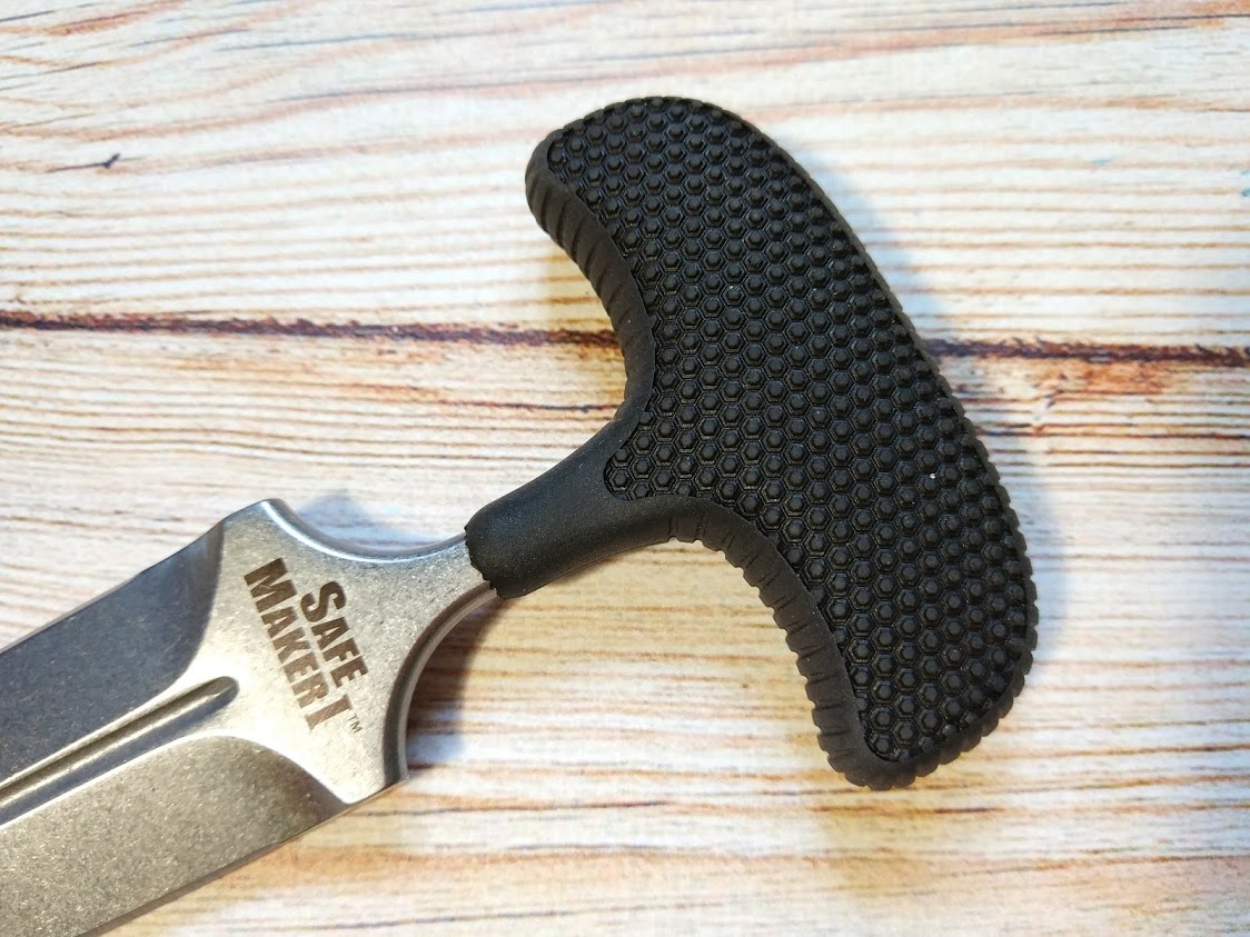 Safe Maker 1 относится к ножам так называемого тычкового типа (push dagger). Это ножи Т-образной формы, с рукоятью, расположенной перпендикулярно клинку. Поэтому нож в руке лежит таким необычным образом: лезвие находится между пальцев впереди кулака.