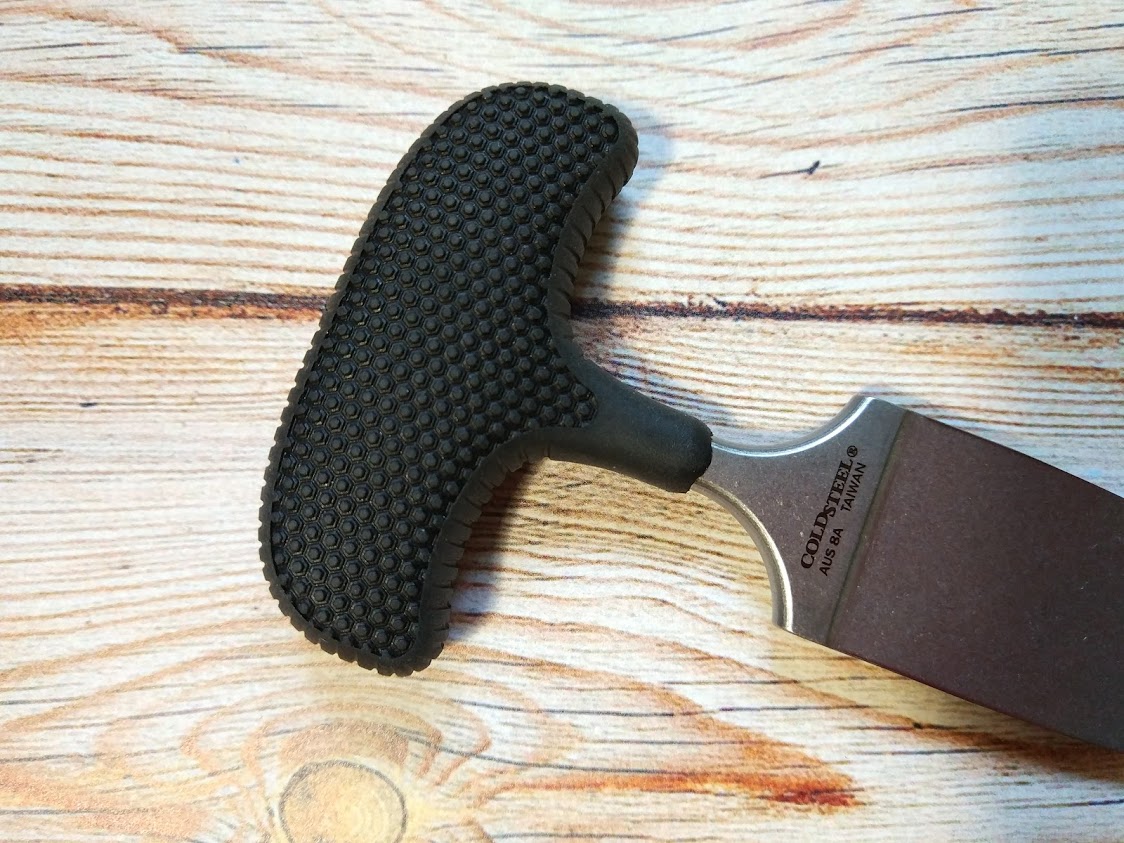 Рукоять залита кратоном (Kray-Ex™), демонстрирующим отличные амортизационные свойства. Также кратон распространяется и на часть стебля, соединяющего клинок с рукоятью (на металлической части «рукояти» так же сняты все фаски и все максимально «сглажено и закруглено», а сам «стебель» в сечении овал, что позволяет максимально обезопасить пальцы при уколах и порезах), текстура рукояти обеспечивает надежную фиксацию ножа в руке.
