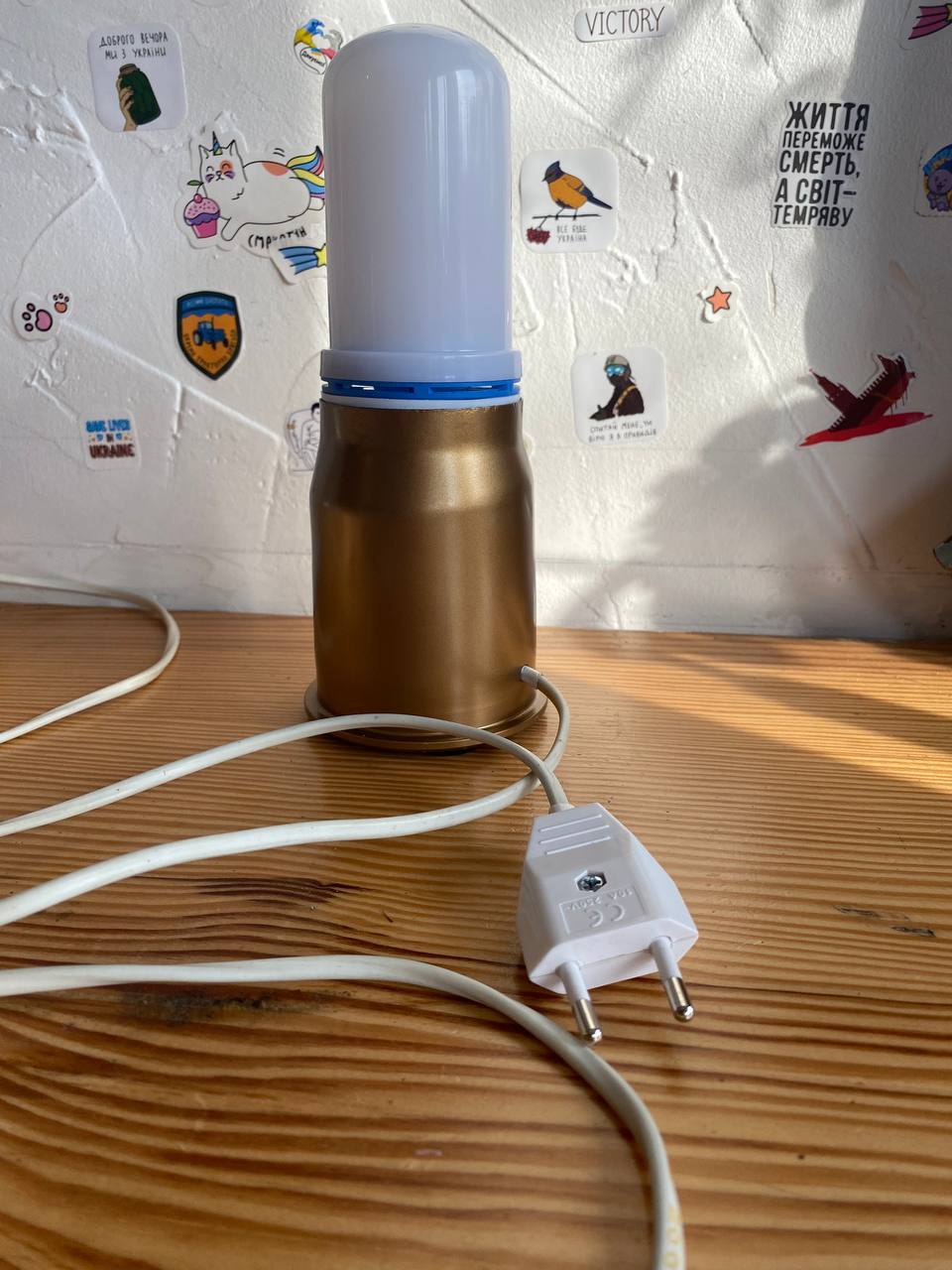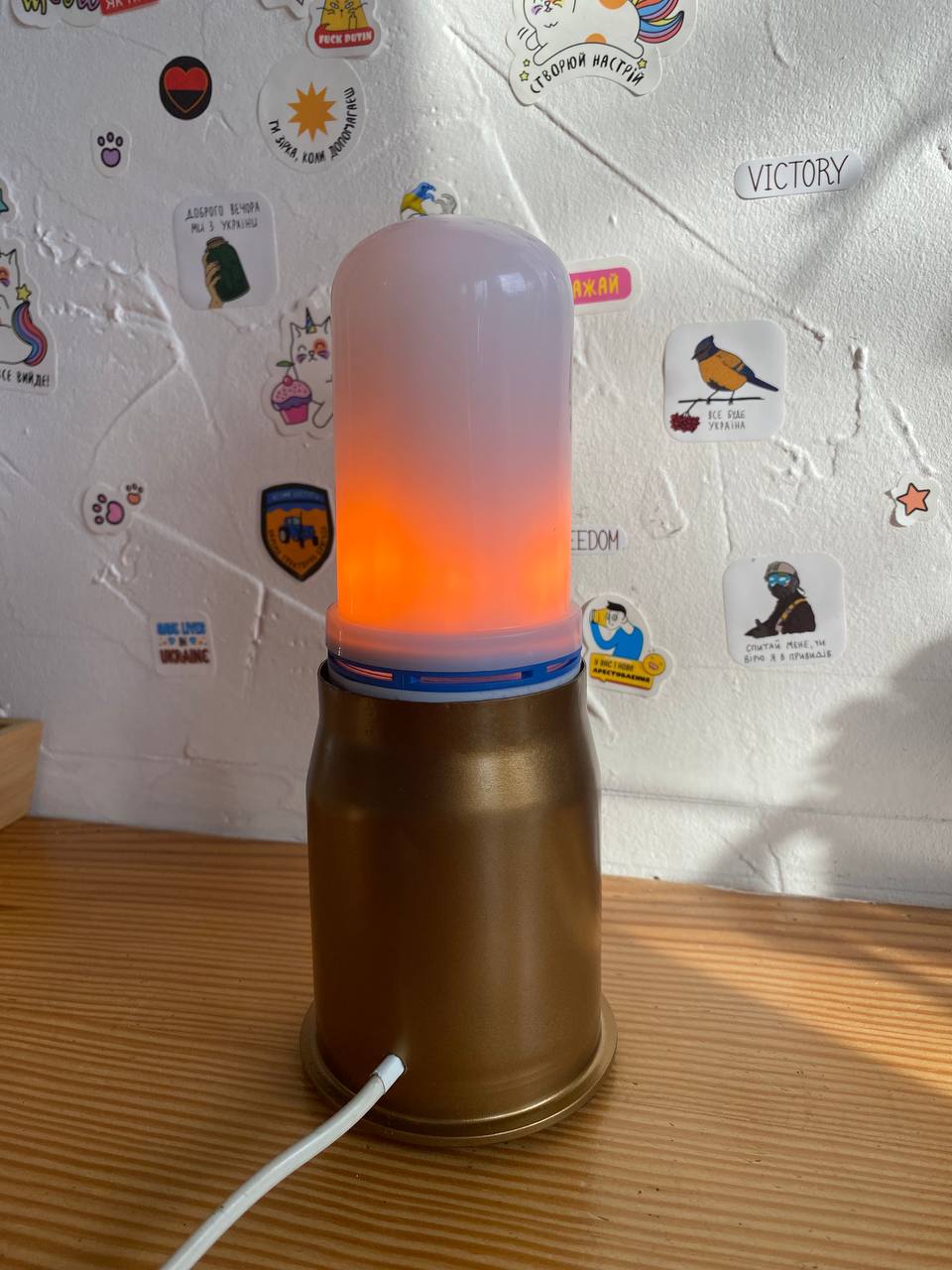Дуже крутий світильник ручної роботи. Вся електрика в ідеальному робочому стані. Капсюль неробоча, тому це йде як сувенір. Є відео роботи. Всі виручені кошти підуть на підтримку підрозділу ТРО, що наразі боронить нашу країну на сході.