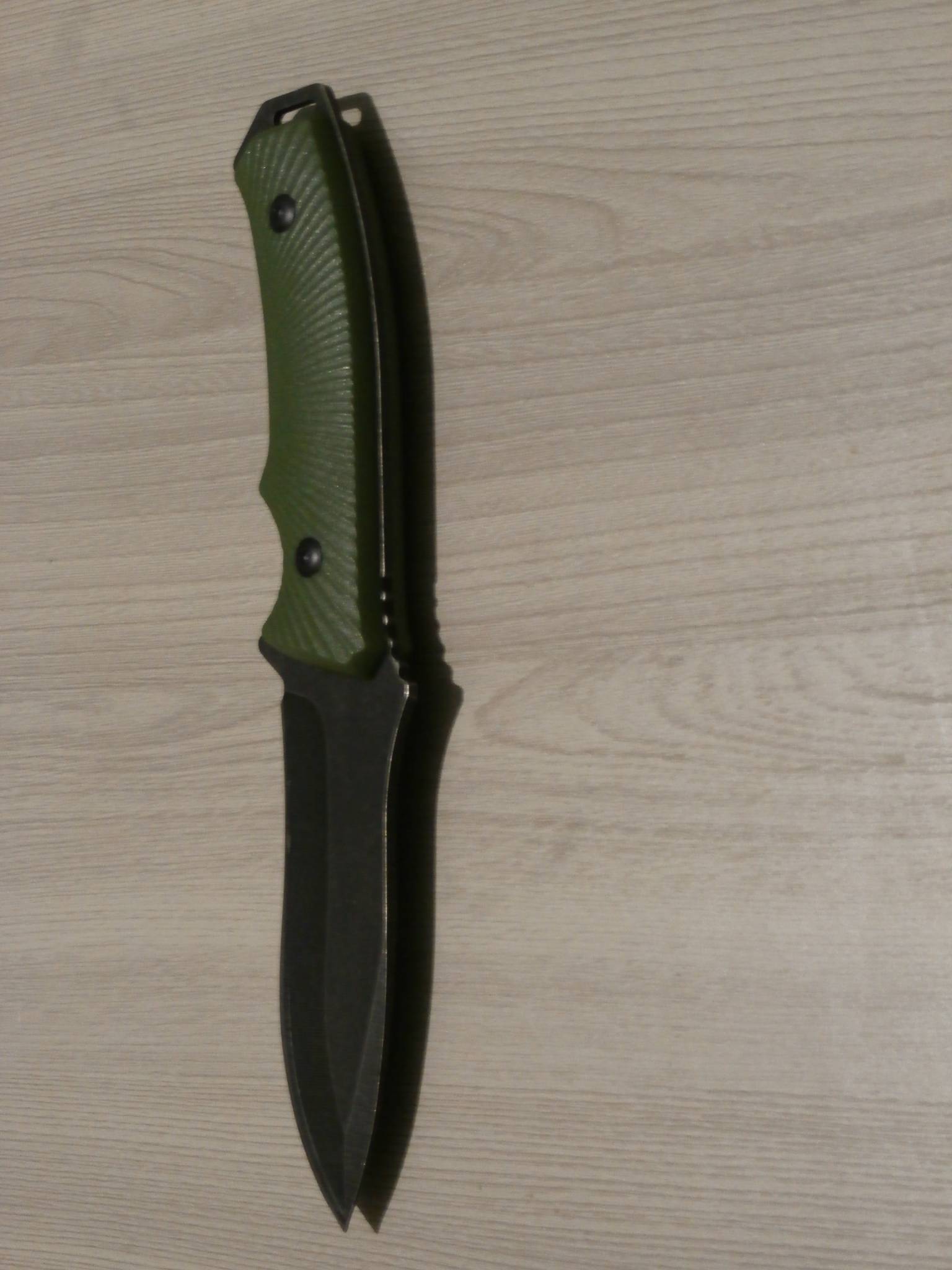 Хороший, міцний ніж.Дуже цікавий розмір - невеликий 23см.Буде чудовим рішенням під певні завдання.Дуже якісний. Лезо коротке, але товсте. Клинок цілісний, йде цілком в рукоять до кінця - фуллтанг.