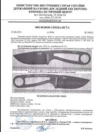 Відразу впадає у вічі відсутність накладок (плашок) на рукояті. Можна зробити обмотку рукояті паракордовим шнуром і перетворити ніж на інструмент виживання. У комплекті з ножем йдуть також пластикові піхви з фіксацією ножа і довгим ланцюжком, який дає можливість носити ніж на шиї.