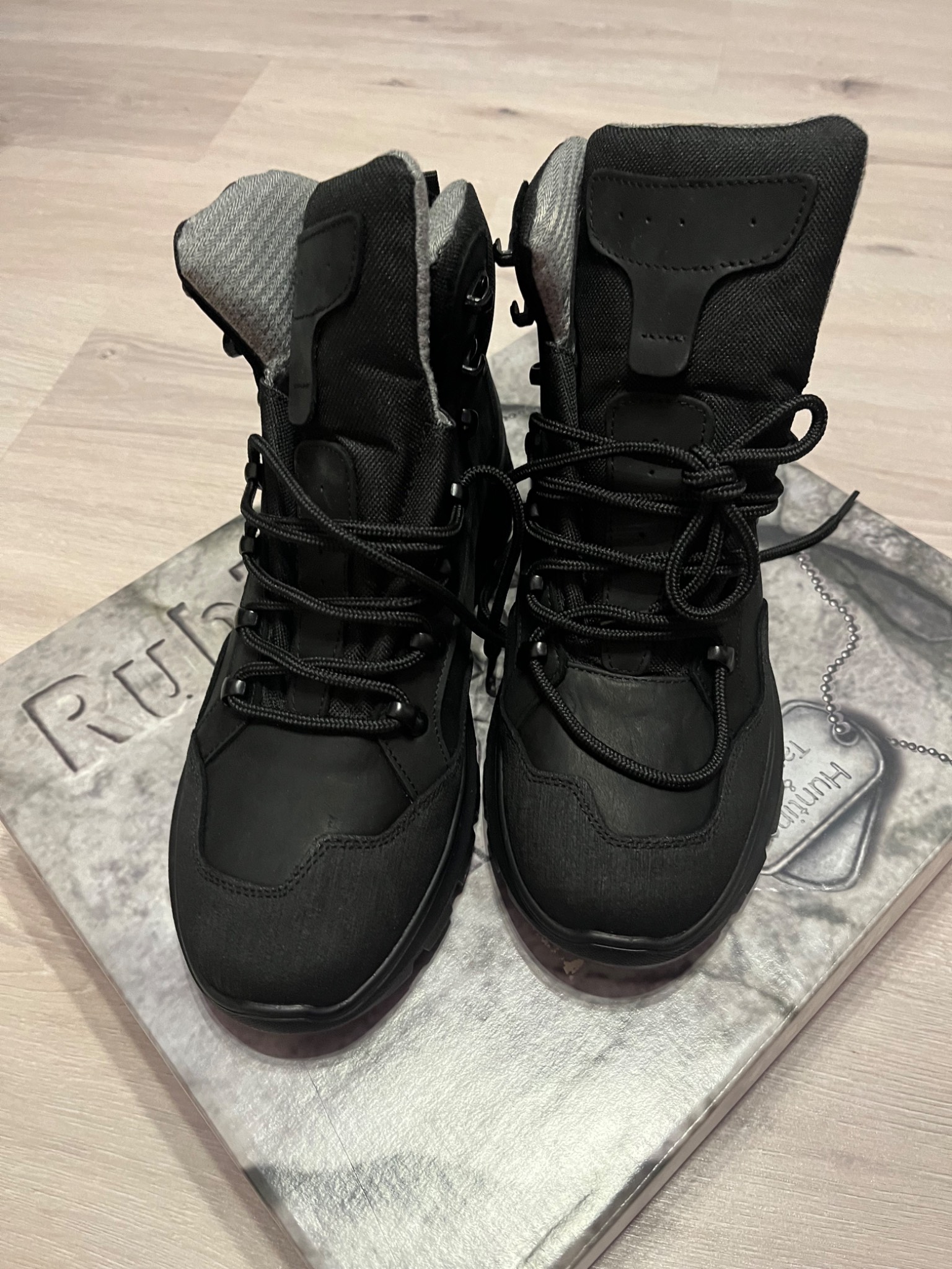 1. Вид: Черевики тактичні комбіновані з натуральної шкіри "нубук гідрофобний" та текстильного матеріалу "Cordura", чорного кольору, із шкіряною союзкою, та обсоюзкою яка зроблена із зносостійкої шкіри із спеціальним «антивандальним» покриттям, з берцями та глухим клапаном. Водонепронкина мембрана, шви якої загерметизовані спеціальною стрічкою, ортопедичними устілками та металевими петлями для шнурків.