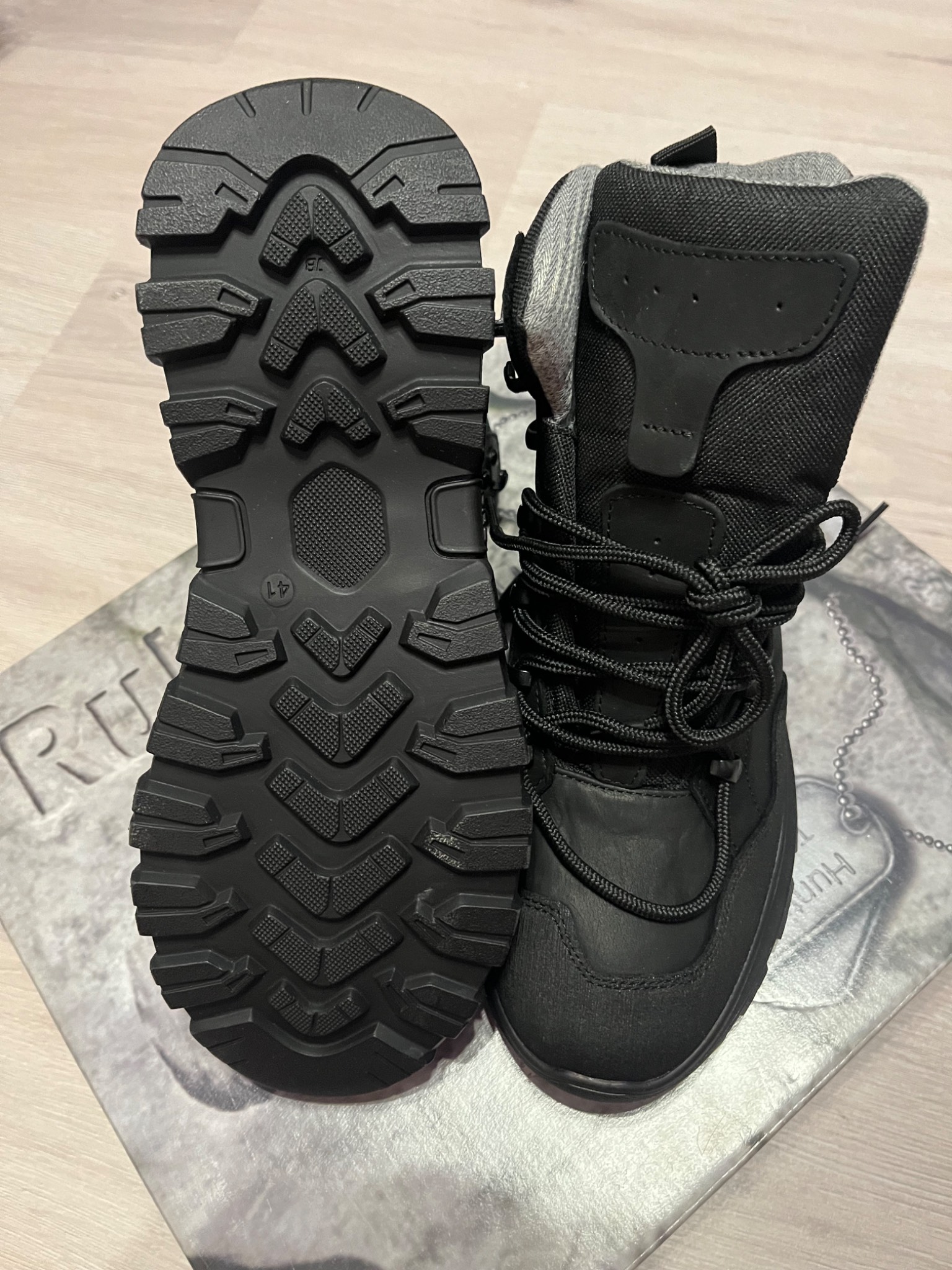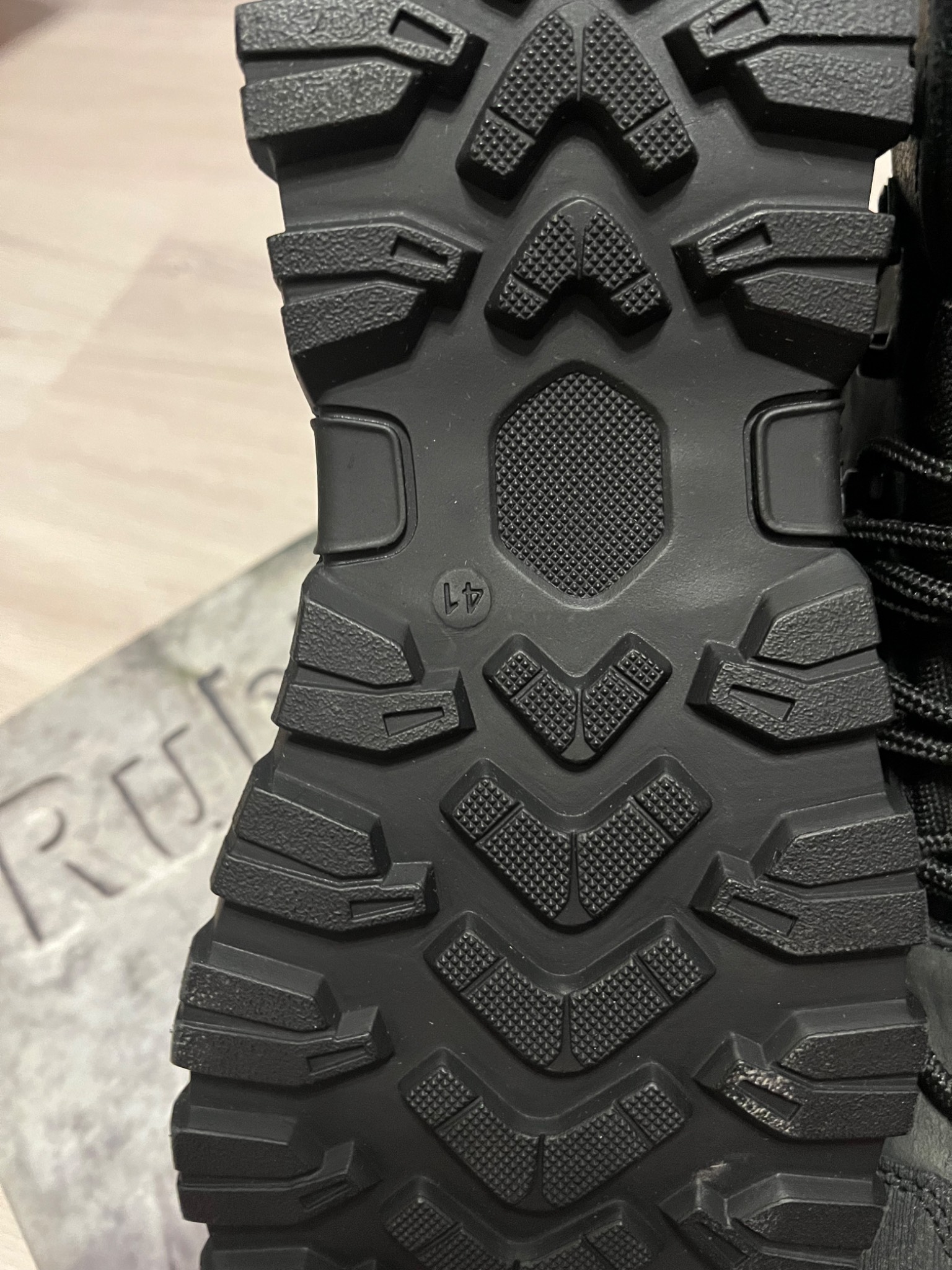 12. Підошва: Клеєвого метода кріплення. Матеріал TR (термопластична гума), стійка до високих та низьких температур. Має велику площу контакту з поверхнею, протектор самоочищується.