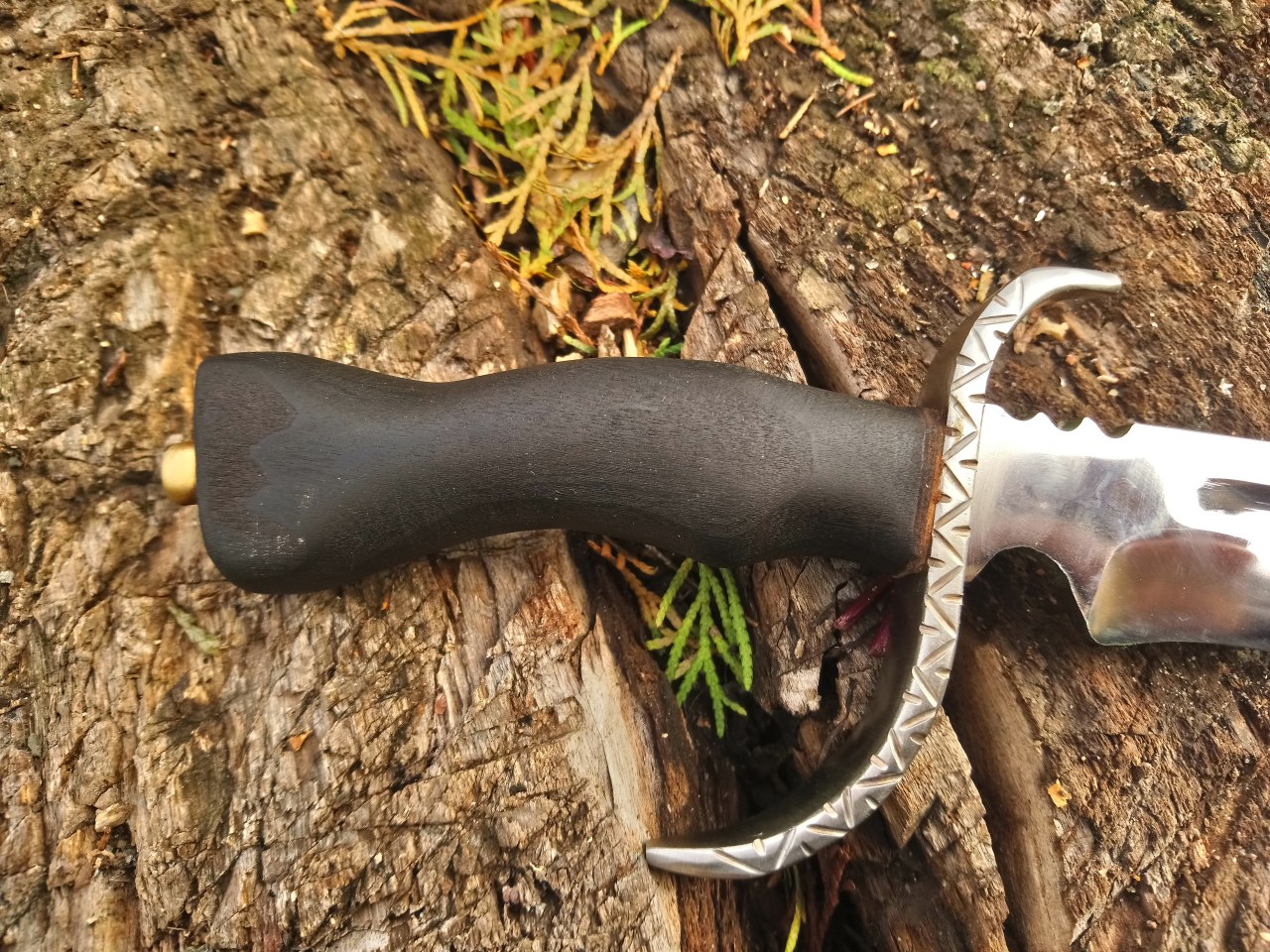 Кован из стали 65х13. Заточка полуторная, в бритву. Угол 25град общий.