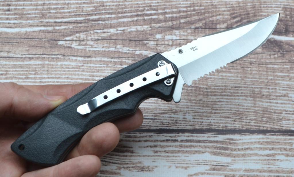 Модель относится к средним по размеру, длина ножа с открытым лезвием – 197 мм, а в сложенном виде – 117 мм. Модель Ganzo G617 имеет клинок полусеррейторного типа, т.е. часть клинка —это лезвие с гладкой заточкой, а часть - так называемое серрейторное лезвие, в котором есть пилообразные зазубрины по режущей кромке.