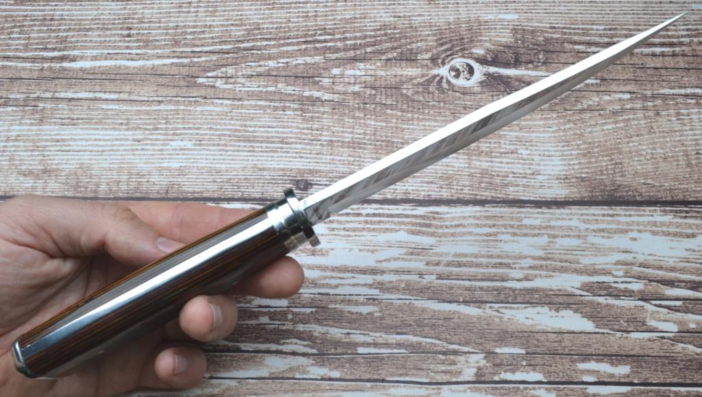 Рукоять: бакелит деревянный, больстер и тыльник из стали.