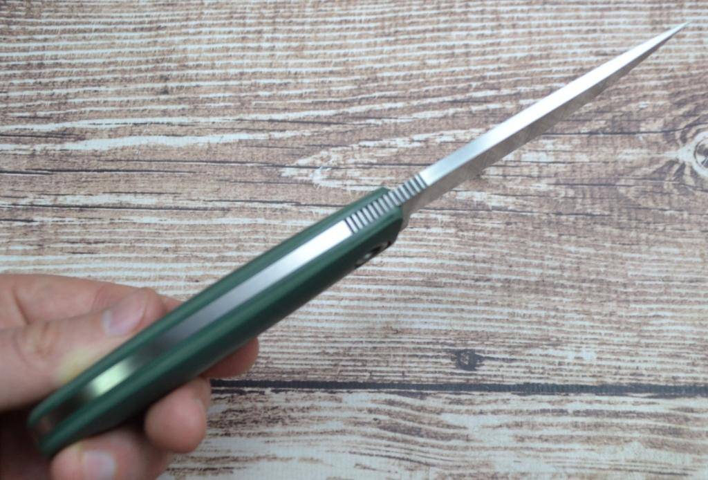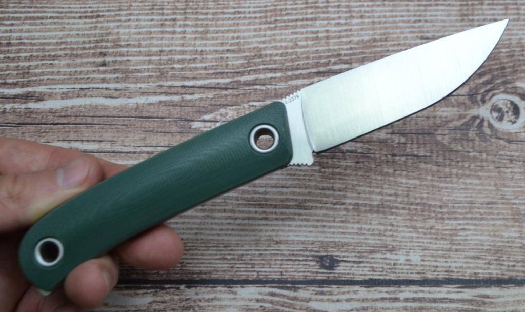 Клинок дроп-пойнт выполнен с высокими прямыми спусками и выпуклой режущей кромкой, что наделяет его глубоким продолжительным резом. Узкий кончик хорошо подходит для работ, требующих точности.