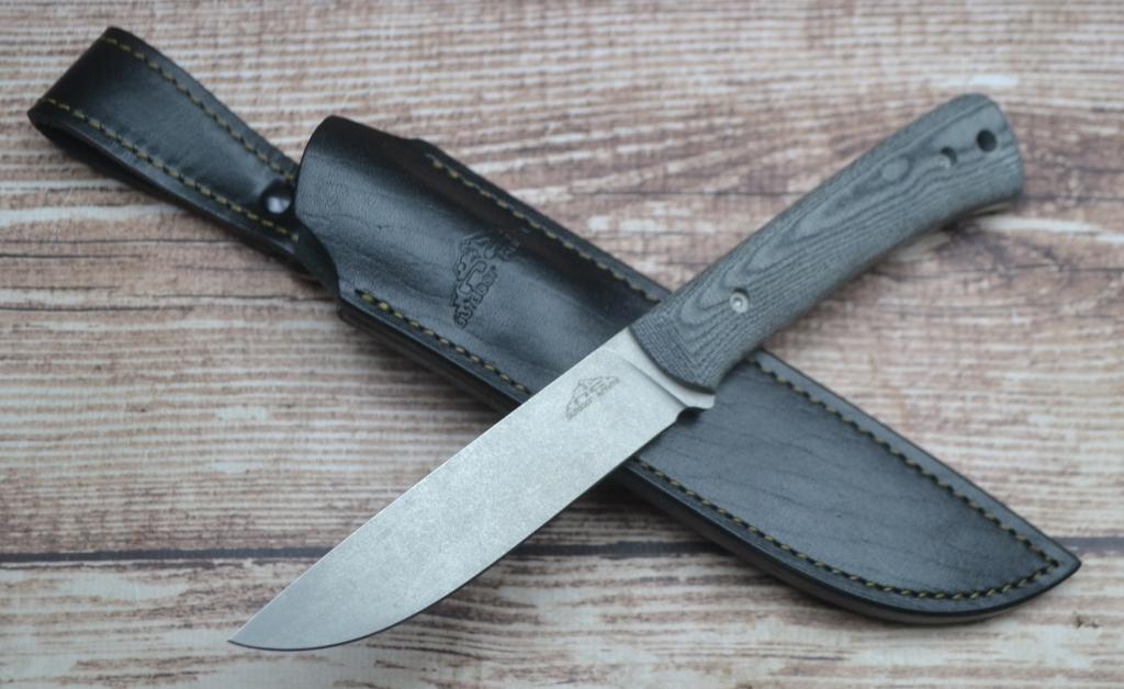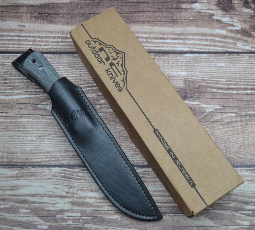 Конструкция ножа - Full-tang, рукоять сформирована накладками из микарты. Есть отверстие под темляк.