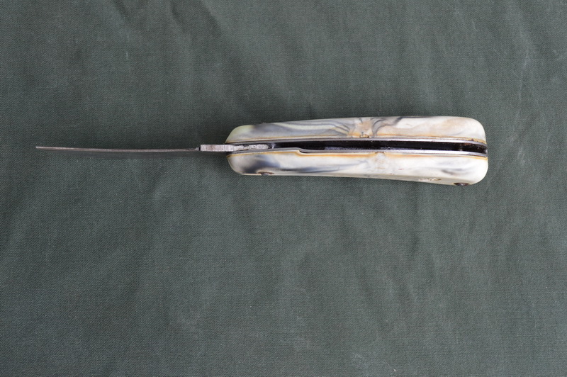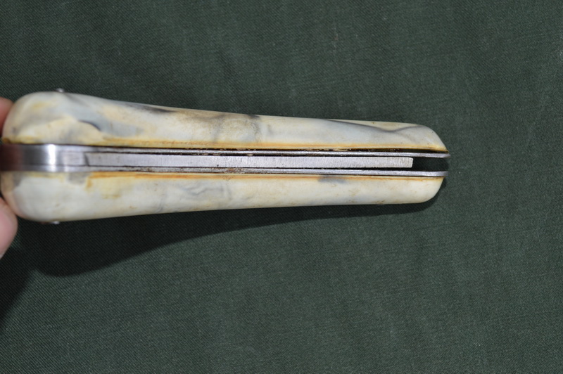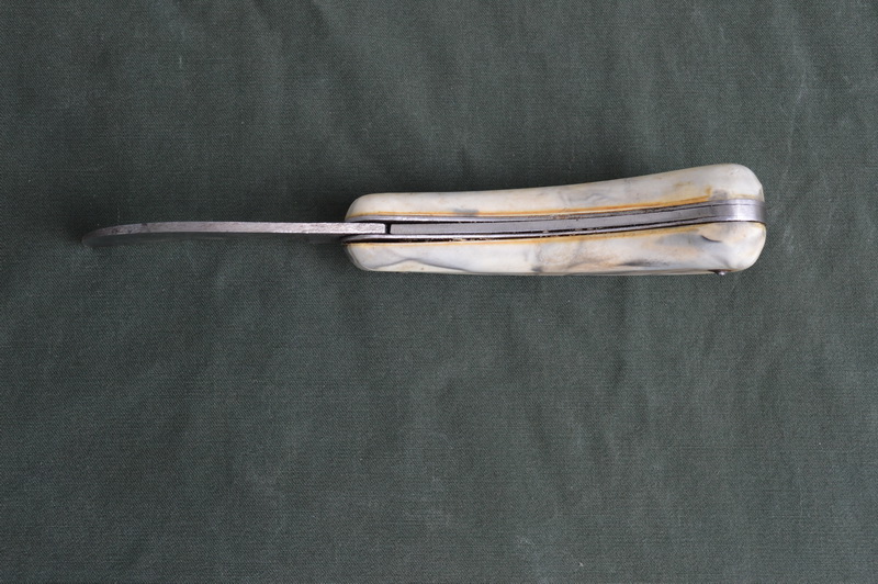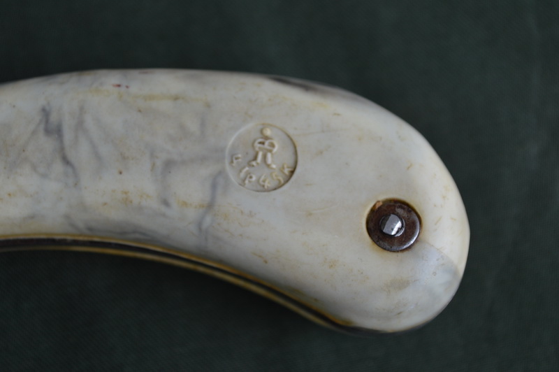 Нож в рабочем состоянии. Присутствует клеймо на рукоятке (см. фото). Присутствует небольшой люфт в районе крепления лезвия.