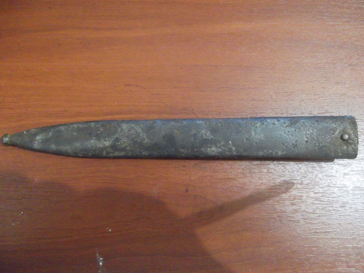 ножны манлихер м 95,чехословацкого производства г.Брно.1919-1921гг.клейма присутствуют,на конце есть трещина 2см.поверхностная чистка,внутри не чистились.метал в норме,свищей нет.доп фото по запросу