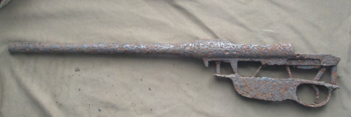 Копанный немного почищен , с край ствола залит свинцом , просверлено отверстие видно на фото , ствол не чищен .