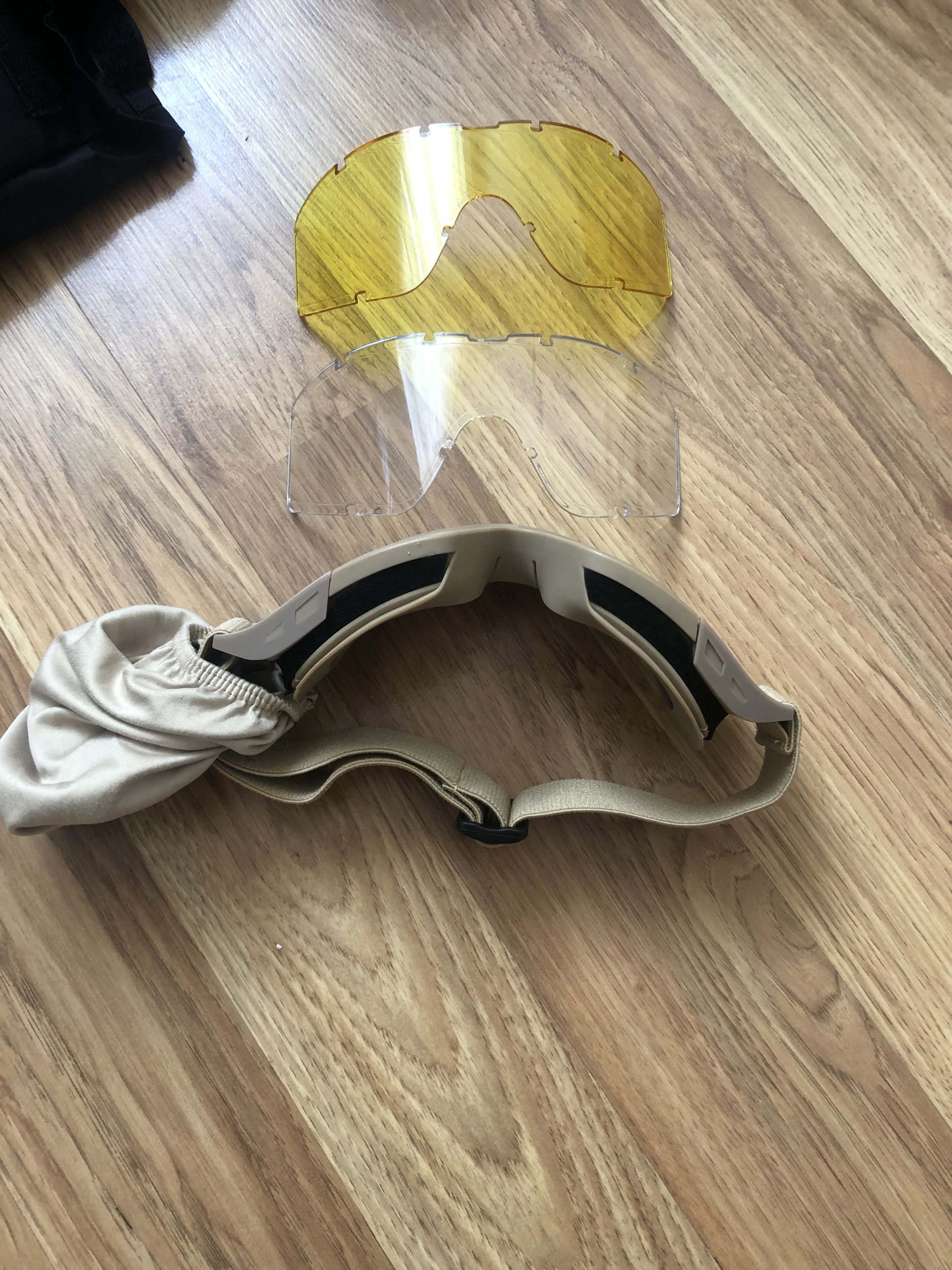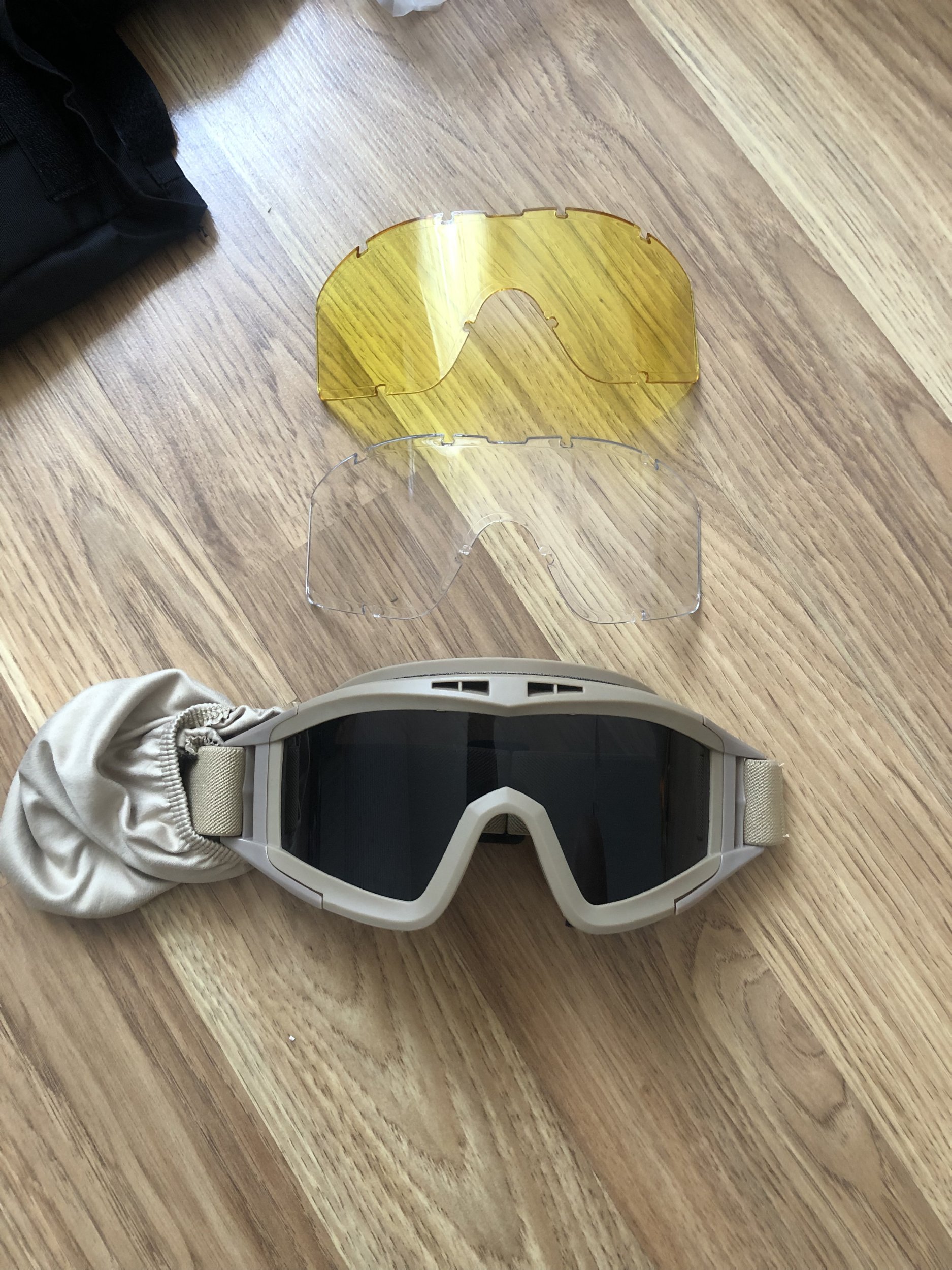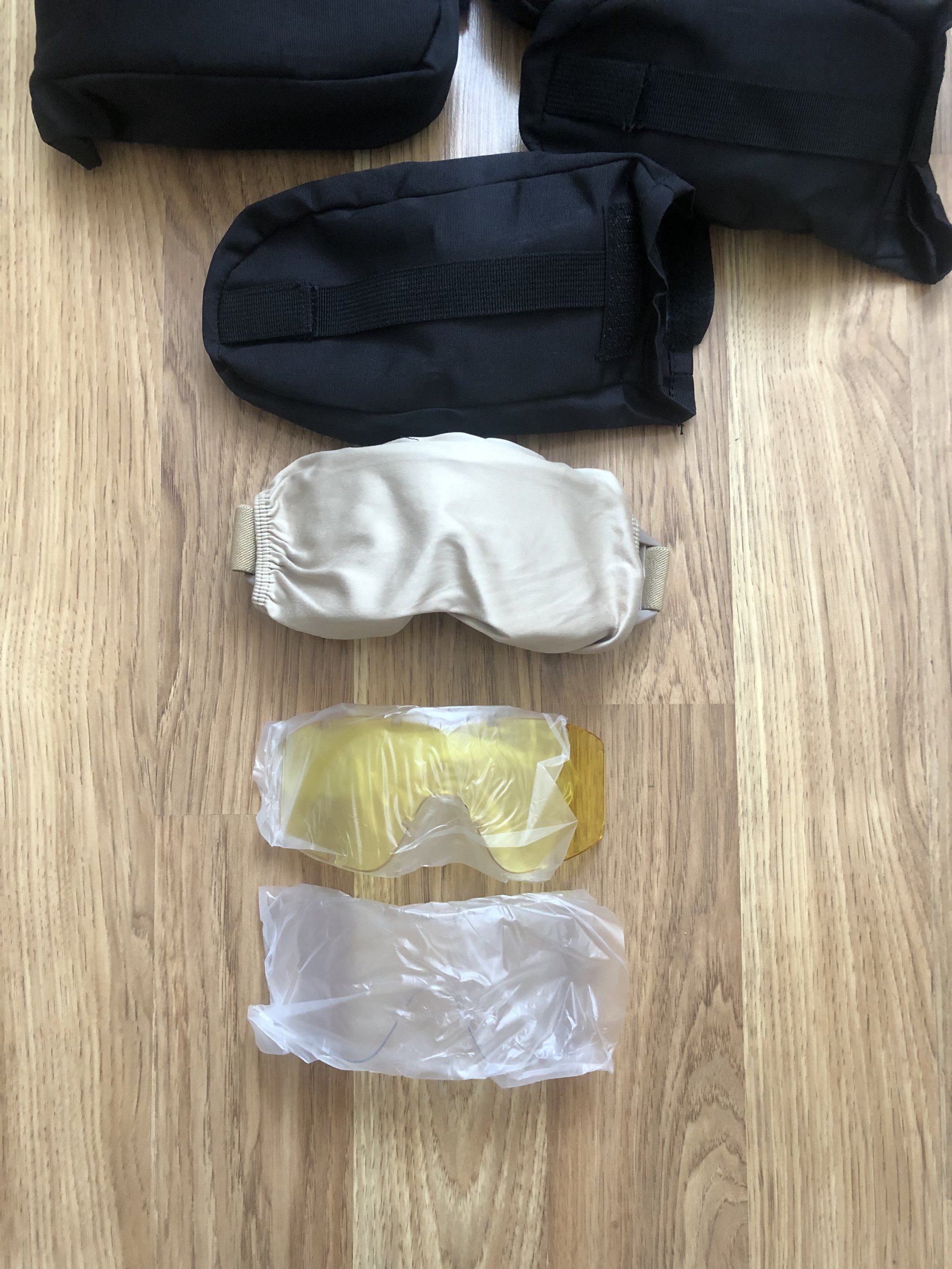 Окуляри , змінні лінзи (чорні, прозорі, жовті), чохол для окулярів, чохол загальний для окулярів та лінз.