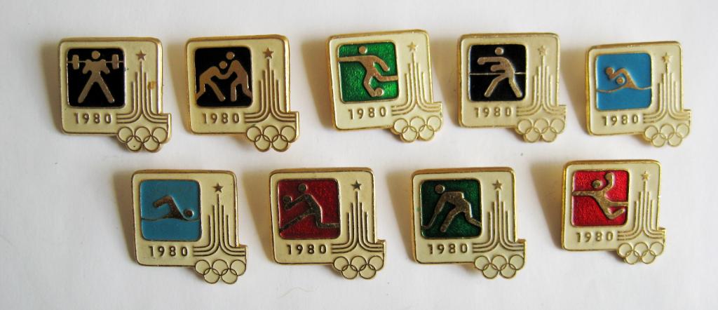 Олимпиада - 1980 = футбол, борьба, штанга, бокс, плавание, волейбол, гандбол и др. = 9 значков
