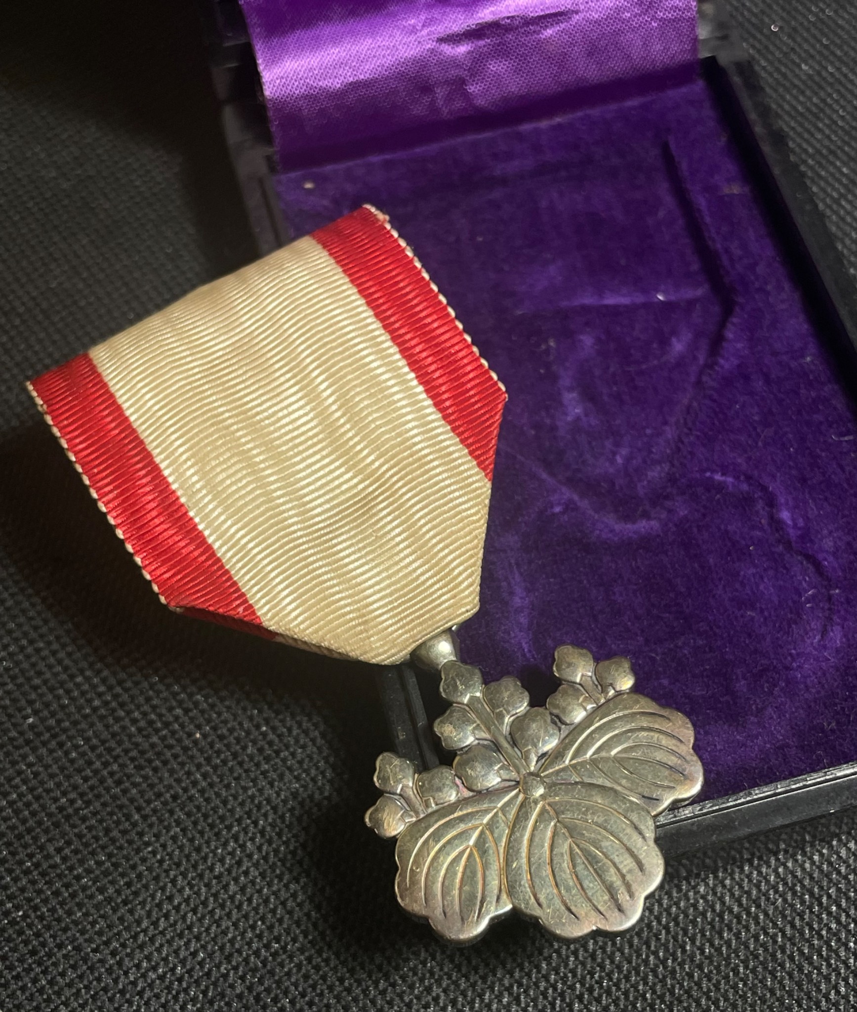 Японія. Орден Вранішнього сонця 8-го ступеня, медаль білої павлонії. Матеріал: срібло. В комплекті пластиковий футляр в гарному стані.
