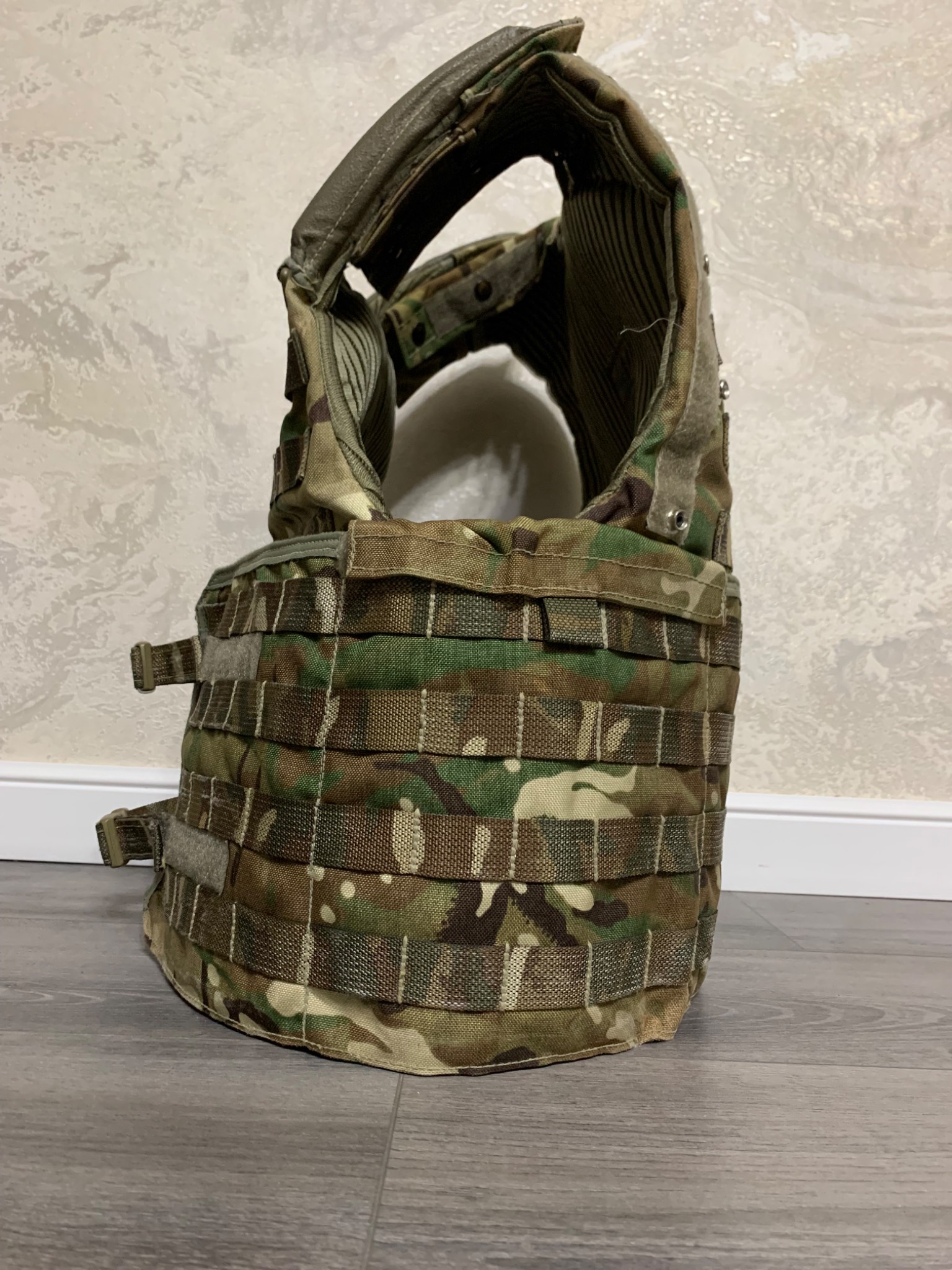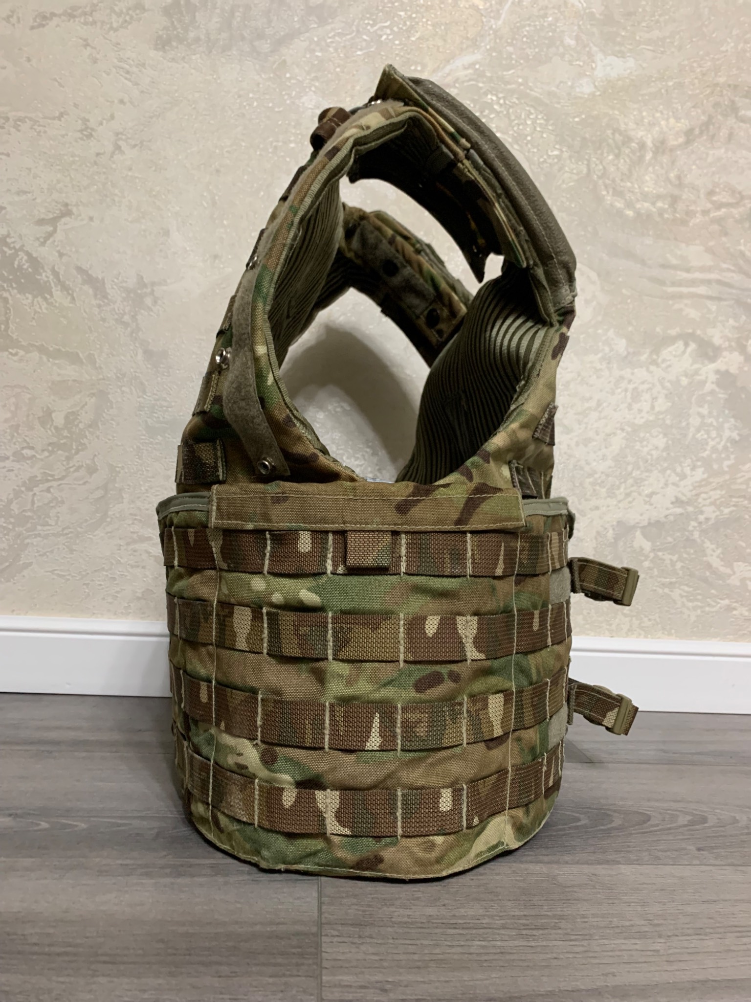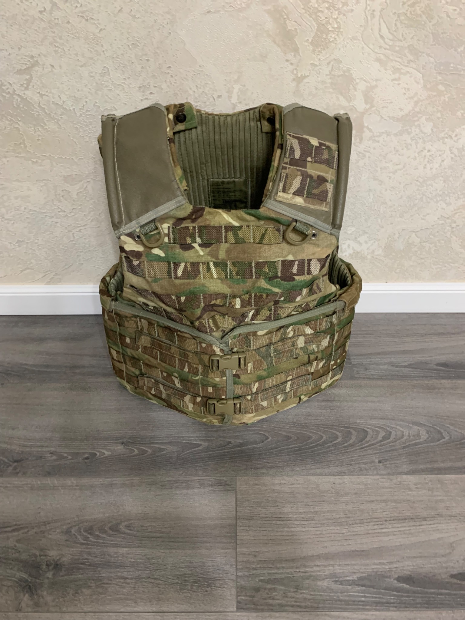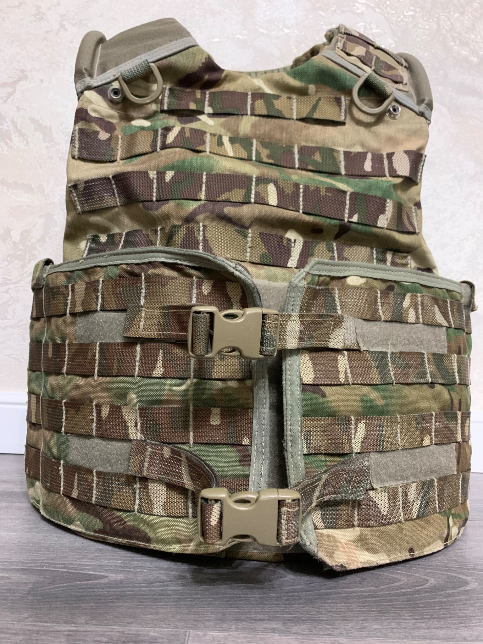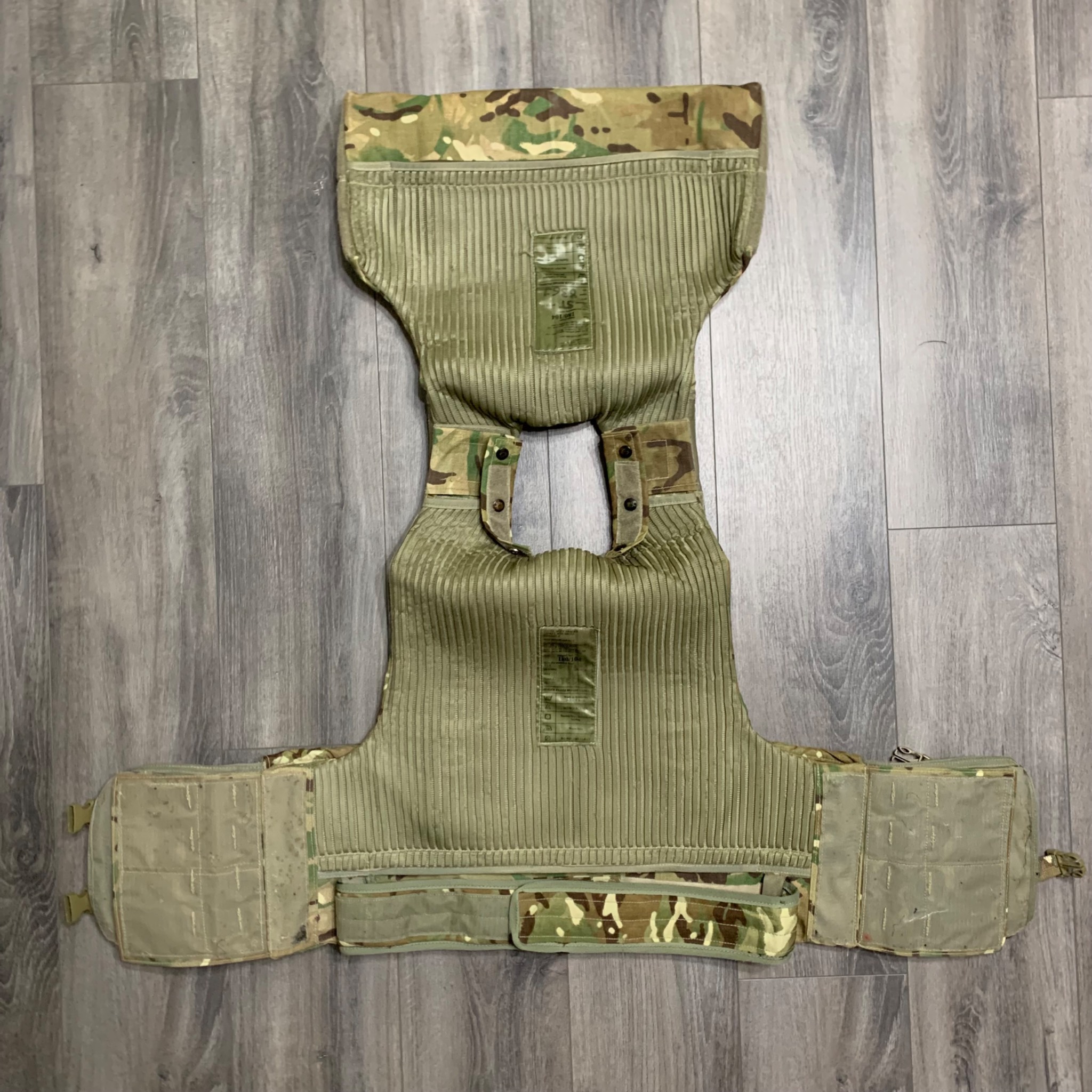 Легендарна модульна система Osprey MK4. До 2016го року, була основною на озброєнні британської арміїї. Матеріал кордура, всі кріплення та велкро-ліпучки на місці. Стан 4 з 5ти. В цю систему можна придбати кевларовий захист (в комплекті немає) на всю площу жилета і плити різного розміру. Комплектація: жилет, пояс каммербанд.
