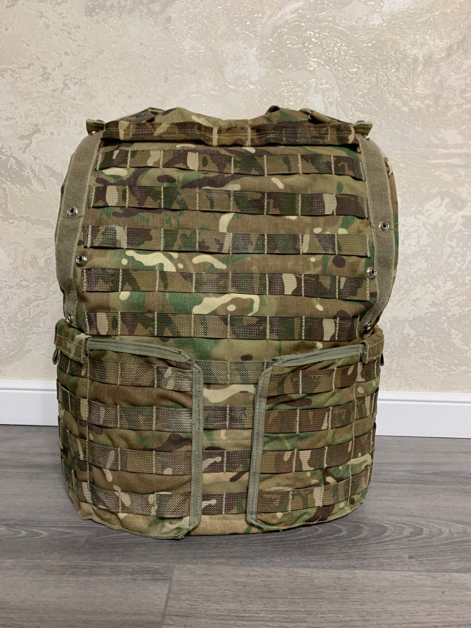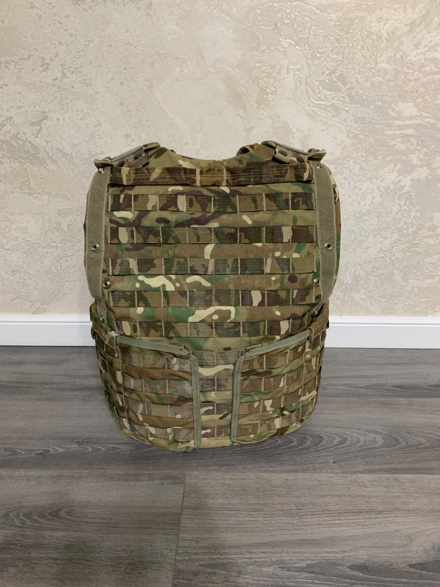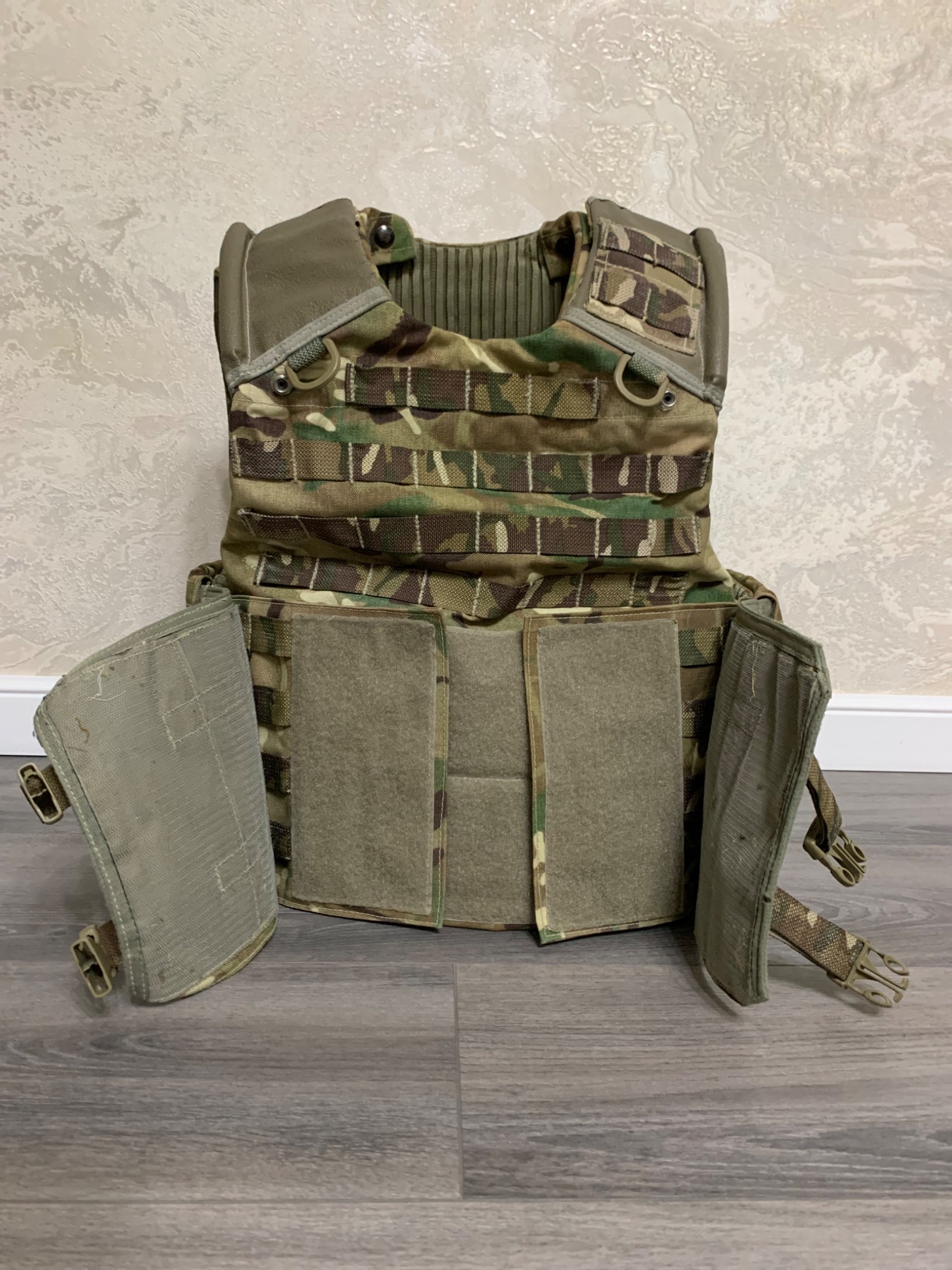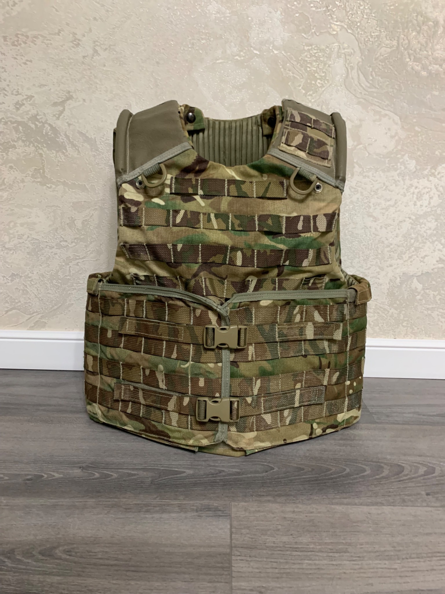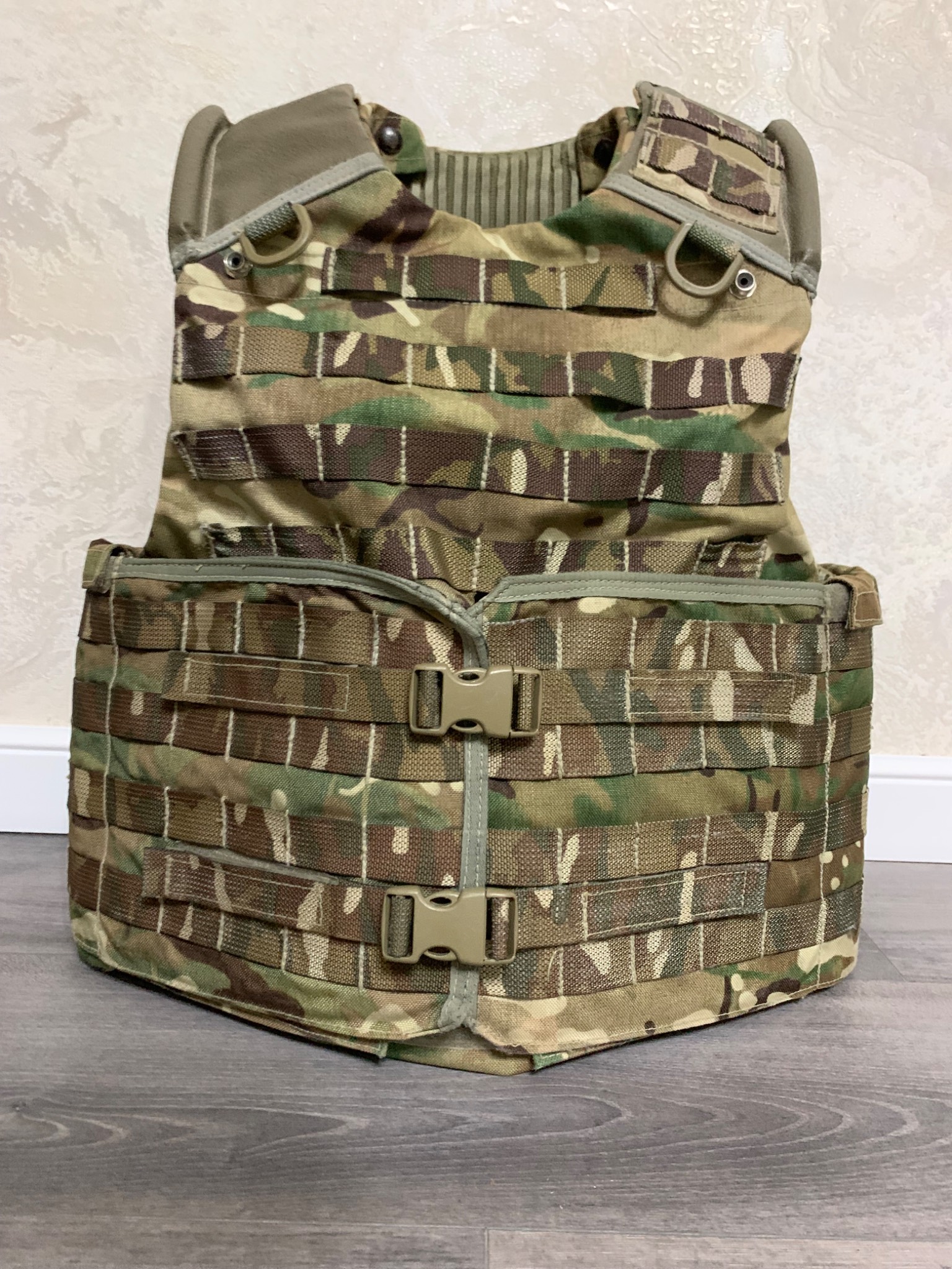 Легендарна модульна система Osprey MK4. До 2016го року, була основною на озброєнні британської арміїї. Матеріал кордура, всі кріплення та велкро-ліпучки на місці. Стан 4 з 5ти. В цю систему можна придбати кевларовий захист (в комплекті немає) на всю площу жилета і плити різного розміру. Комплектація: жилет, пояс каммербанд.