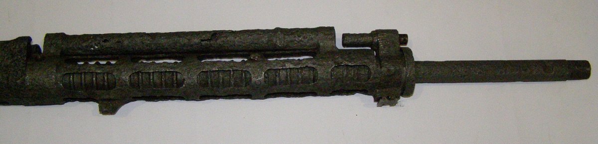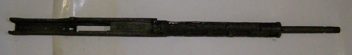 Рама в неплохом сохране,все резьбы хорошие, радиатор убитый, ствол просверлен, вварен штифт,резьба под лейку хорошая на газоотводе нужно прогнать, патронник подрасклёпан.