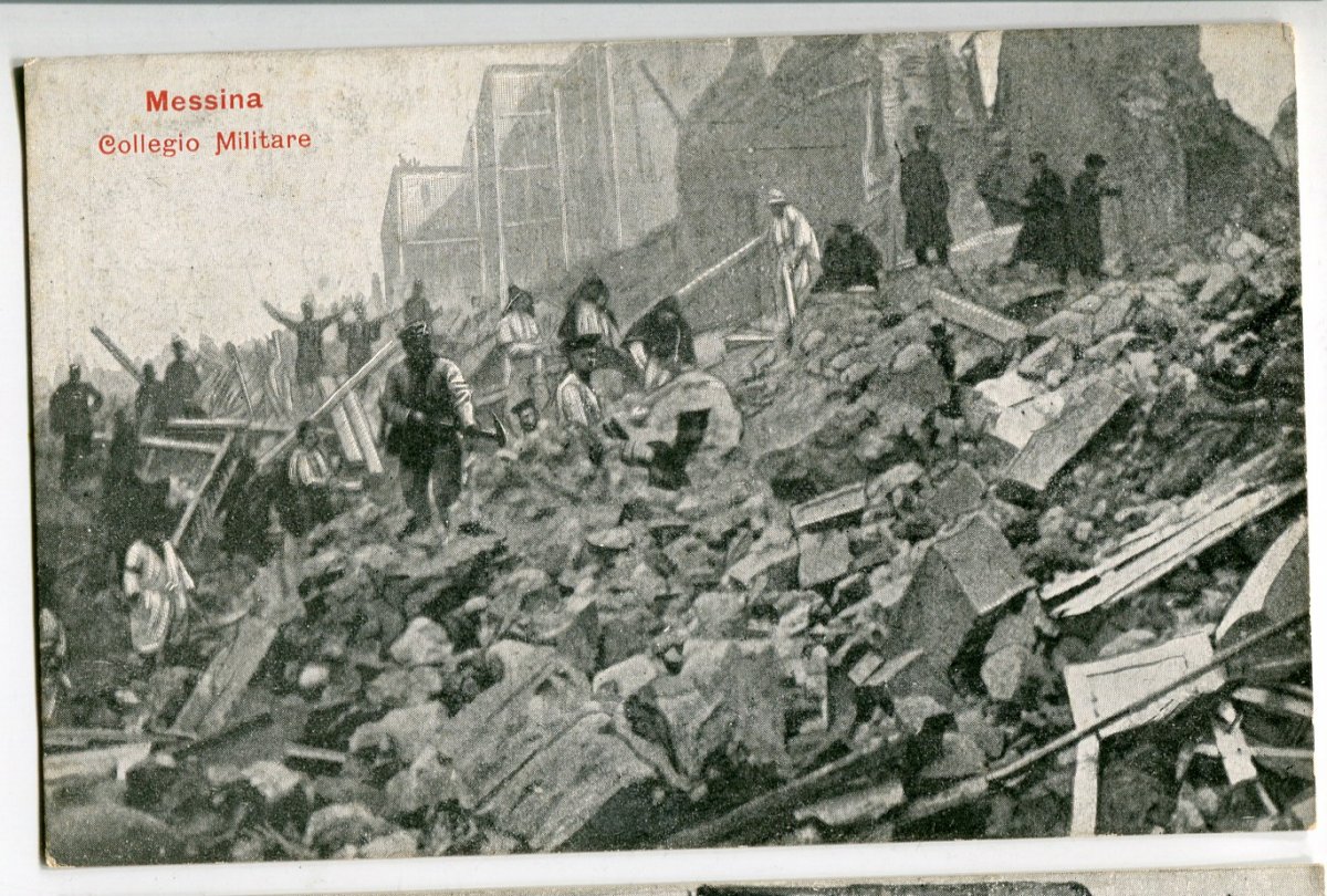 Фото открытка до 1908 год. Калабрийско-Cицилийское землетрясение (28 декабря 1908 г.) Мессина Военный колледж. ОРИГИНАЛ. Состояние отличное. Без надрывов.