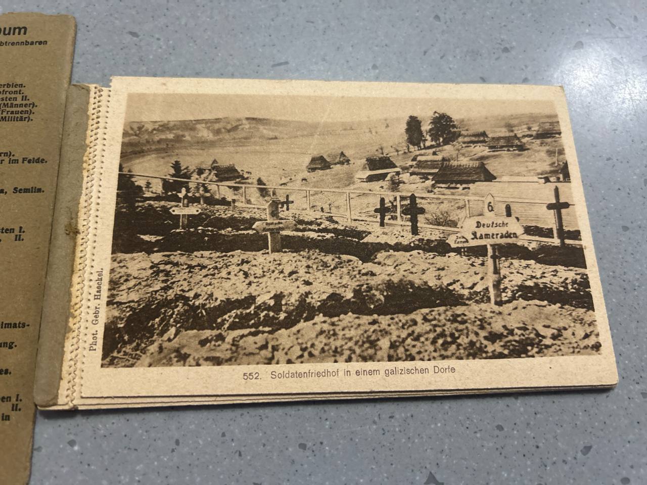 Набор отрывных открыток первой мировой войны. Могилы героев на Востоке, 10 открыток. В наборе не хватает одной открытки. ОРИГИНАЛ. Альбомы выпускались издательством Knackstedt & Co в Гамбурге. .фотографии солдатского кладбища ("Soldatenfriedhof") в галицийской деревне, на Украине, Белорусии.