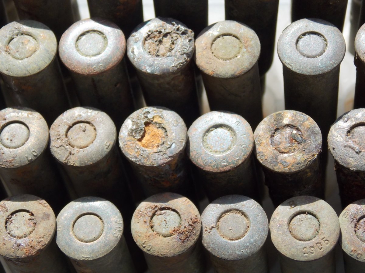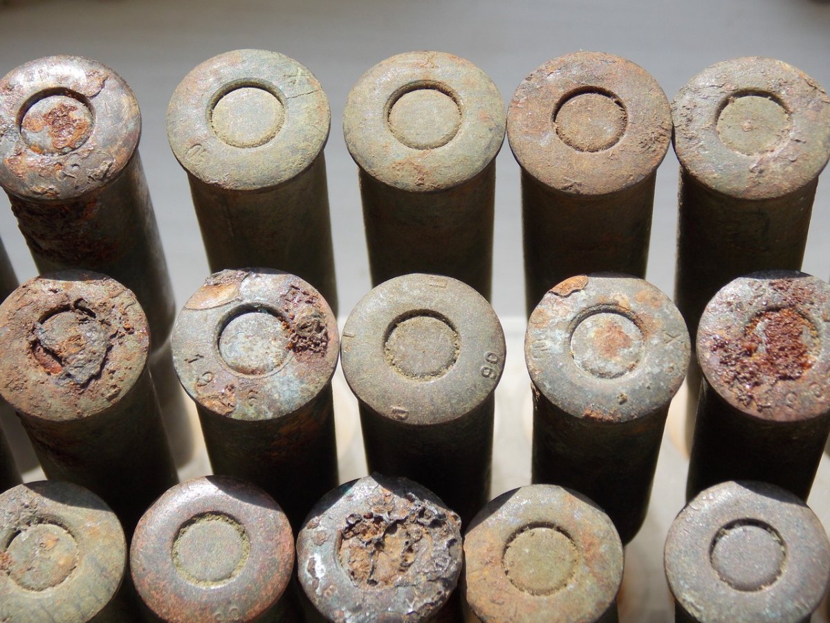 Иногда под забитом землей и остатками обоймы донце выступают интересные вещи..(к примеру,обвел кружочком донце,какая то маркировка интересная)