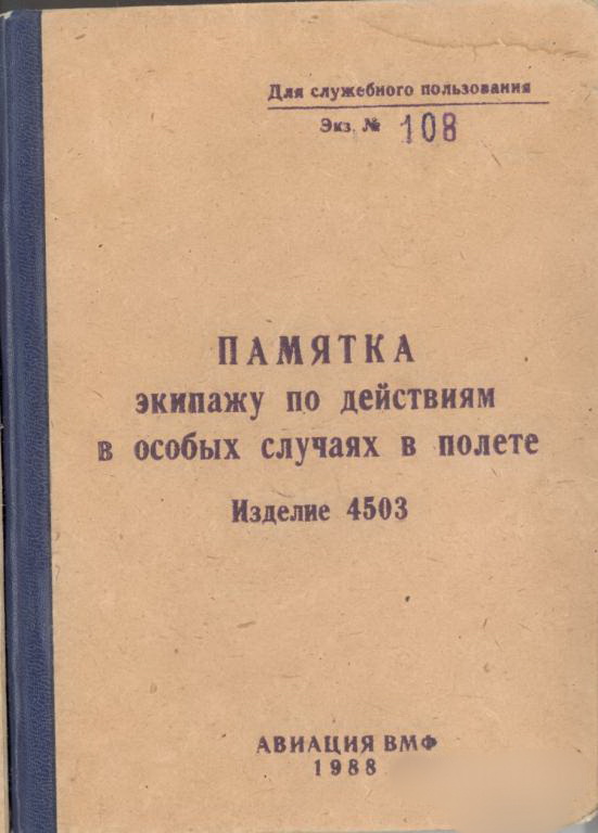 Памятка экипажу по действиям в особых случаях в полете изделие 4503 Ту-22 М 3 Авиация ВМФ СССР 1988