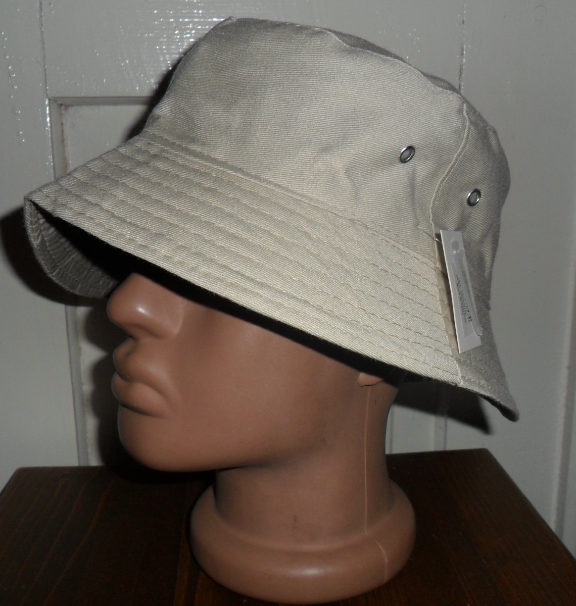 Двошарова робоча панама (working hat), верхній шар бежевий - котон, внутрішній шар - поліестер, має вентиляційні люверси, нова (з ярликом), розмір вказано 57, по замірах 56 см.
