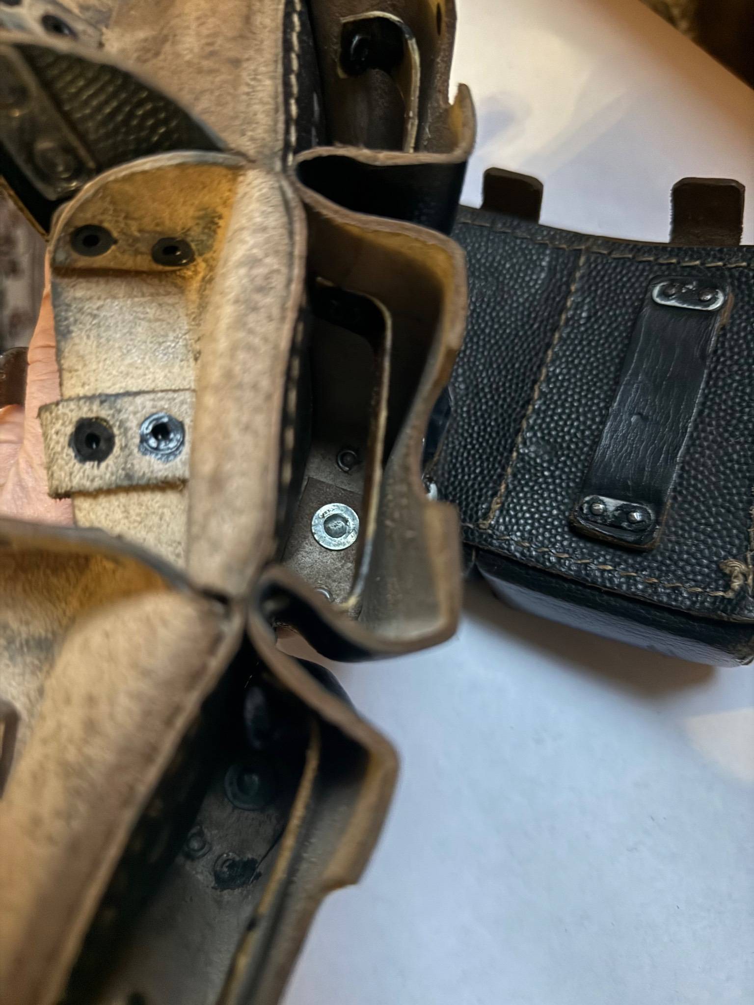 Пара кожаных подсумков для немецкой винтовки Маузер К98. Полностью на одном номере производителя, сохранены все перегородки.
