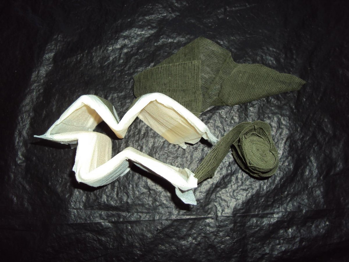 - Два тампоны соединены бинтом, бинт цвет - олива.