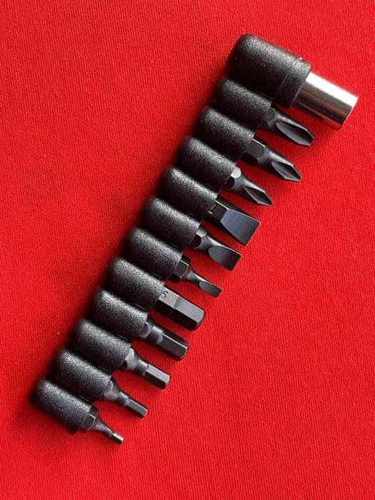 В комплекте идет переходник битодержатель под биты 1\4 и 11шт.бит