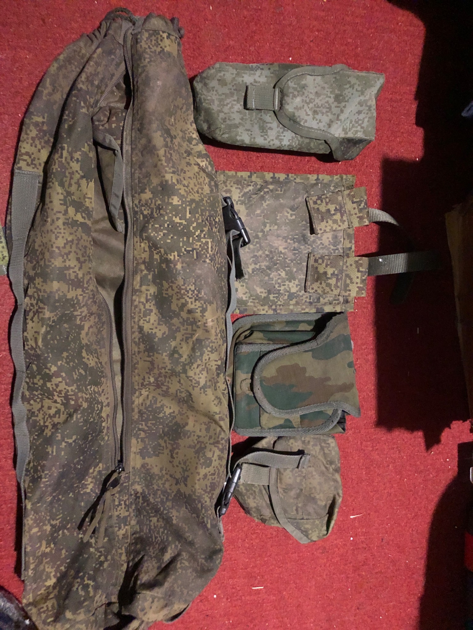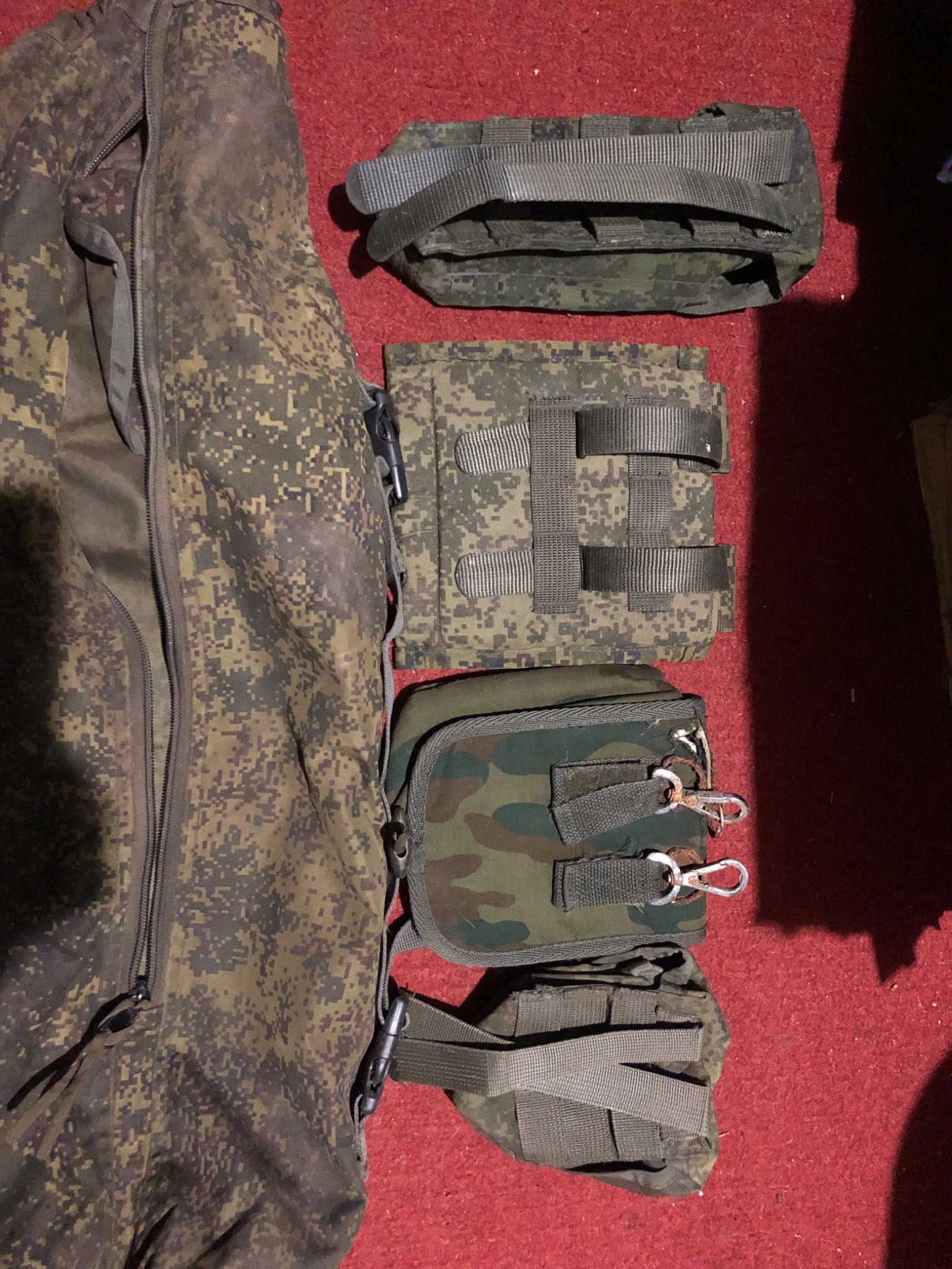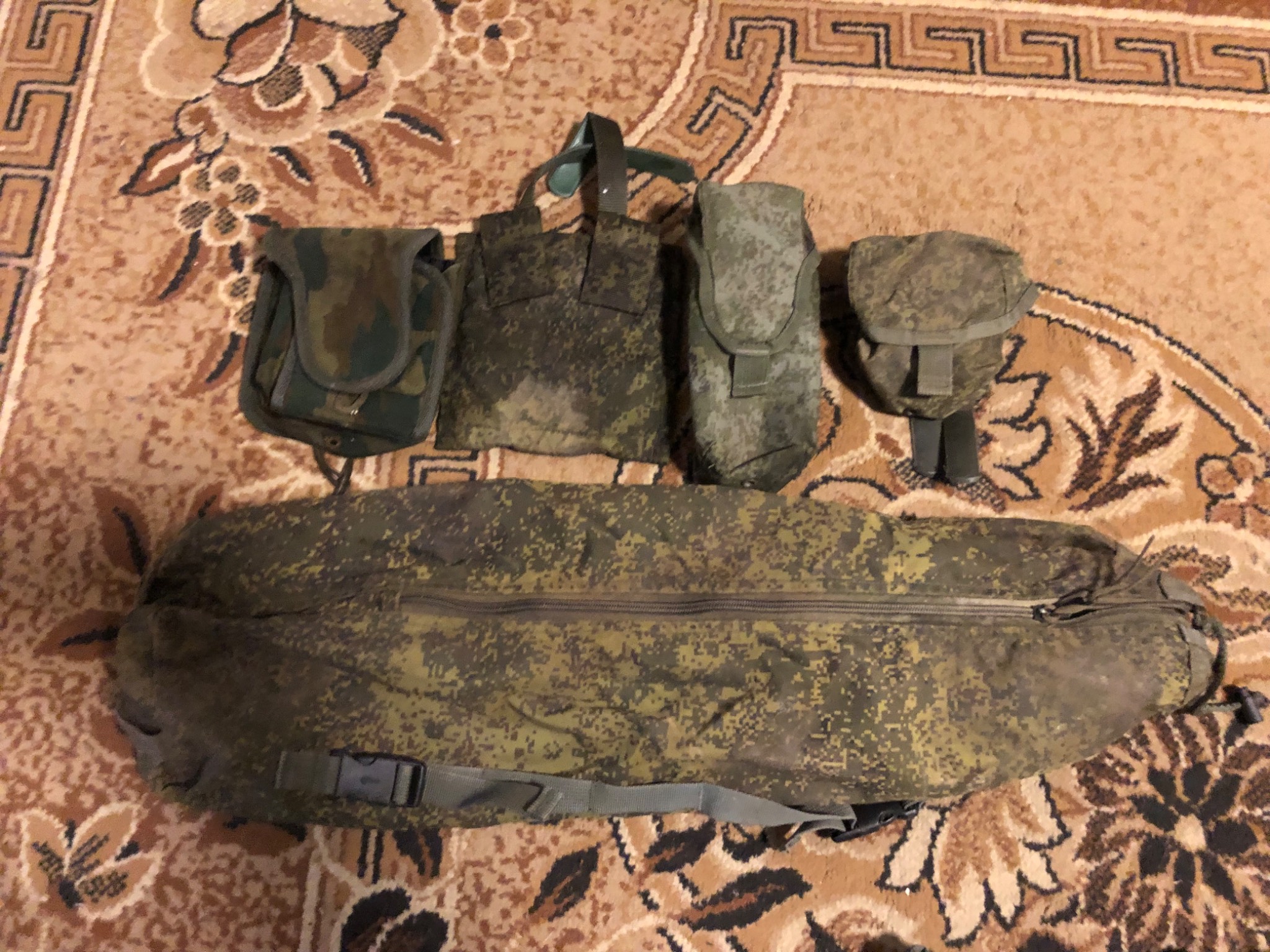 Ось такі підсумки. Класний комплект в колекцію. Підсумок до карімат цілий . Замок працює. 2 різних на аптечку 1 на лопату. 1 під магазини