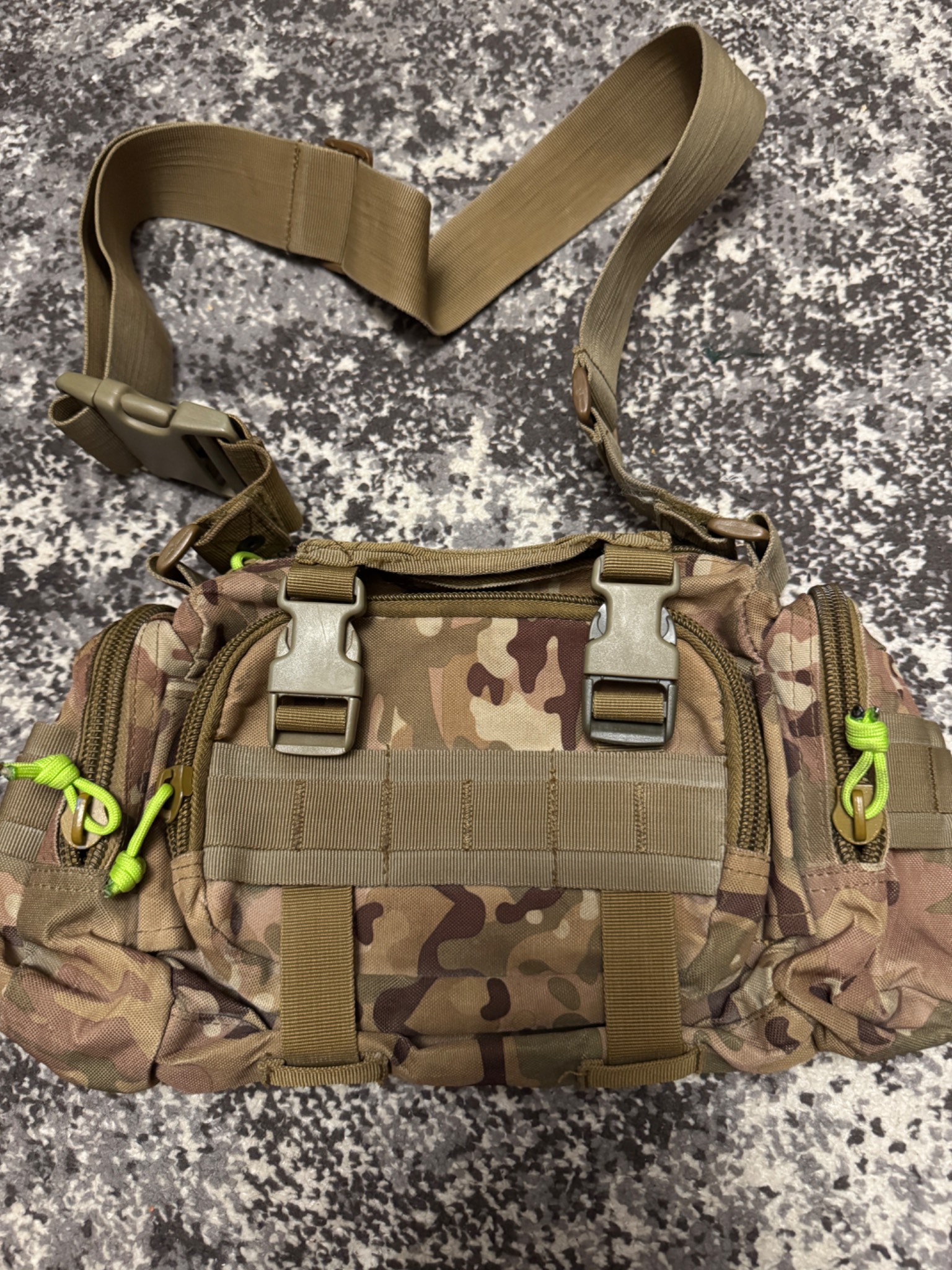 Зручна сумка органайзер. Йшла в комплекті з рюкзаком. 4 відділення. Ремінь дає змогу носити на плечі так і на поясі переставивши кріплення.