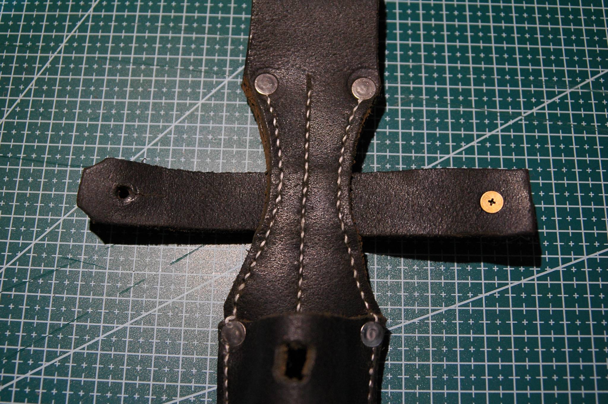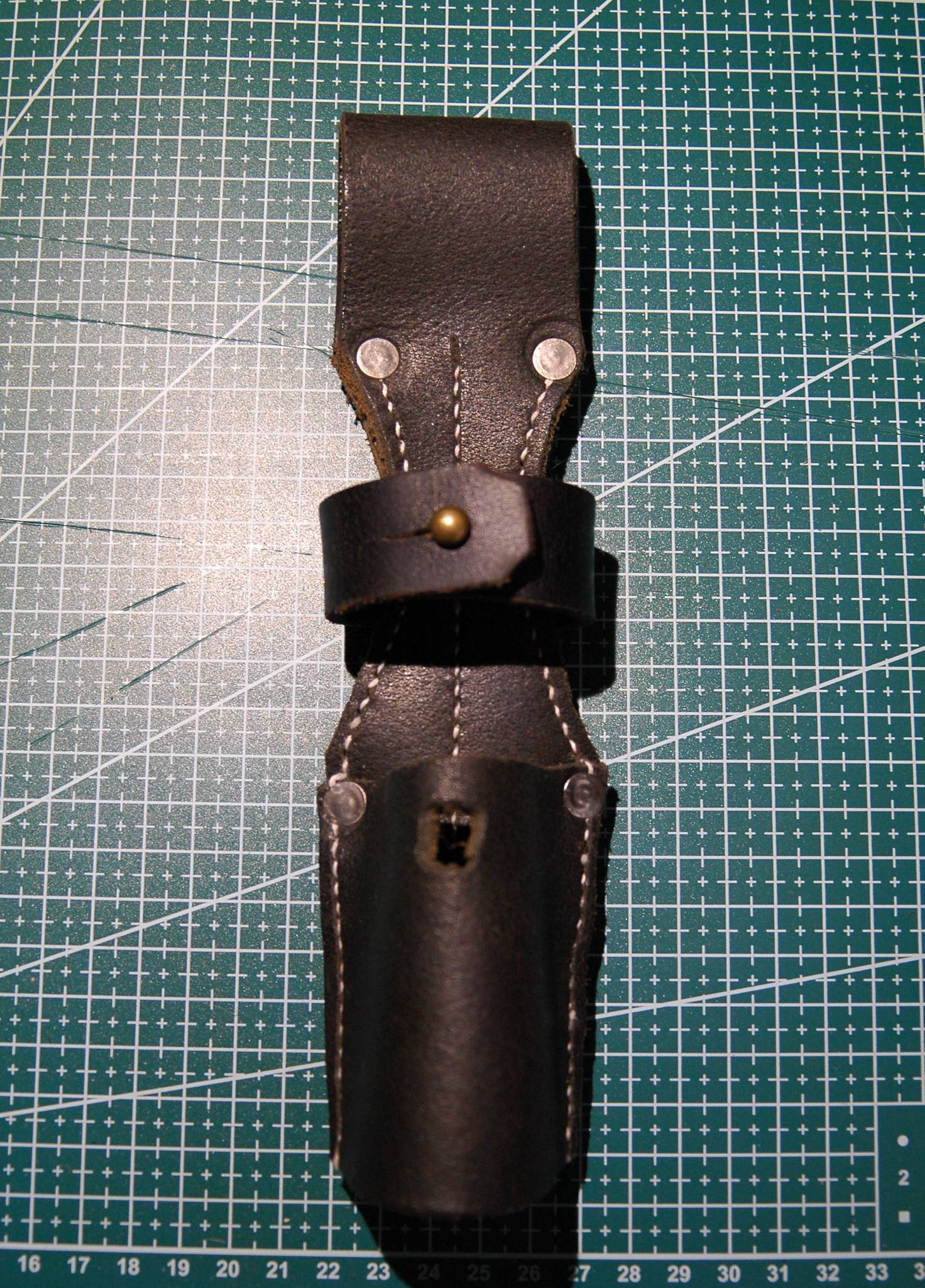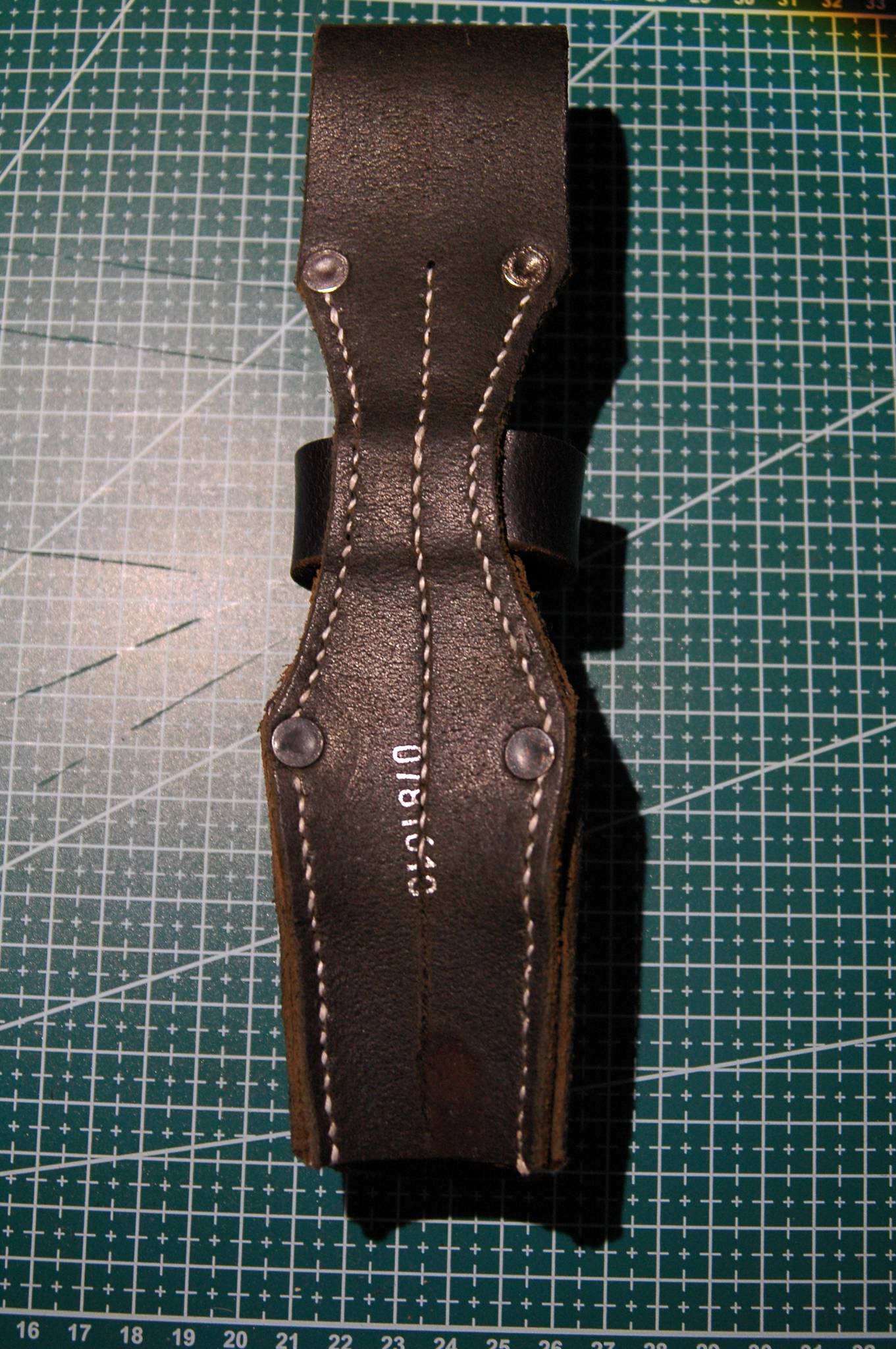 Виготовлений з якісної шкіри вживаного ременя (товщина 3 мм). Прошивка натуральною взуттєвою ниткою. Пошитий "правильною" виворотною стороною назовні.