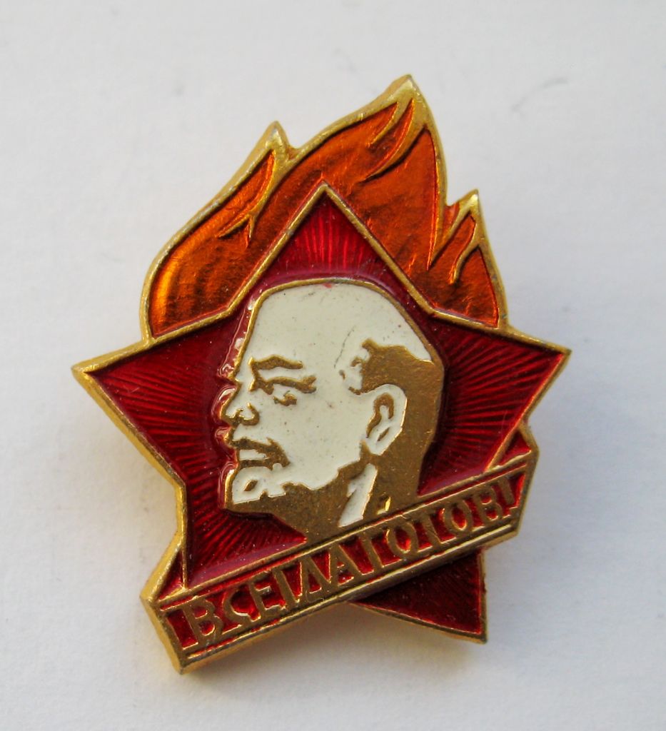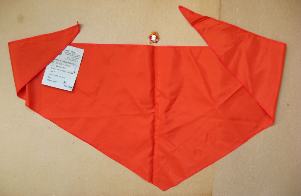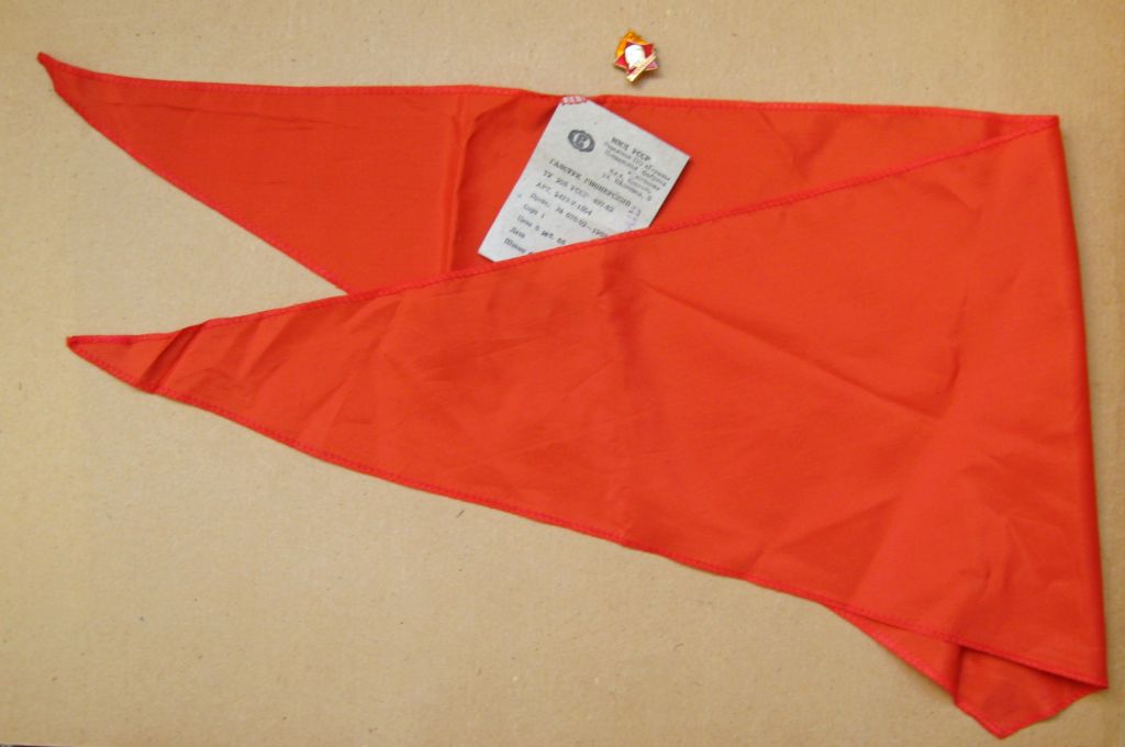 Пионерский галстук и значок = набор пионера СССР = галстук с биркой - значок в люксе