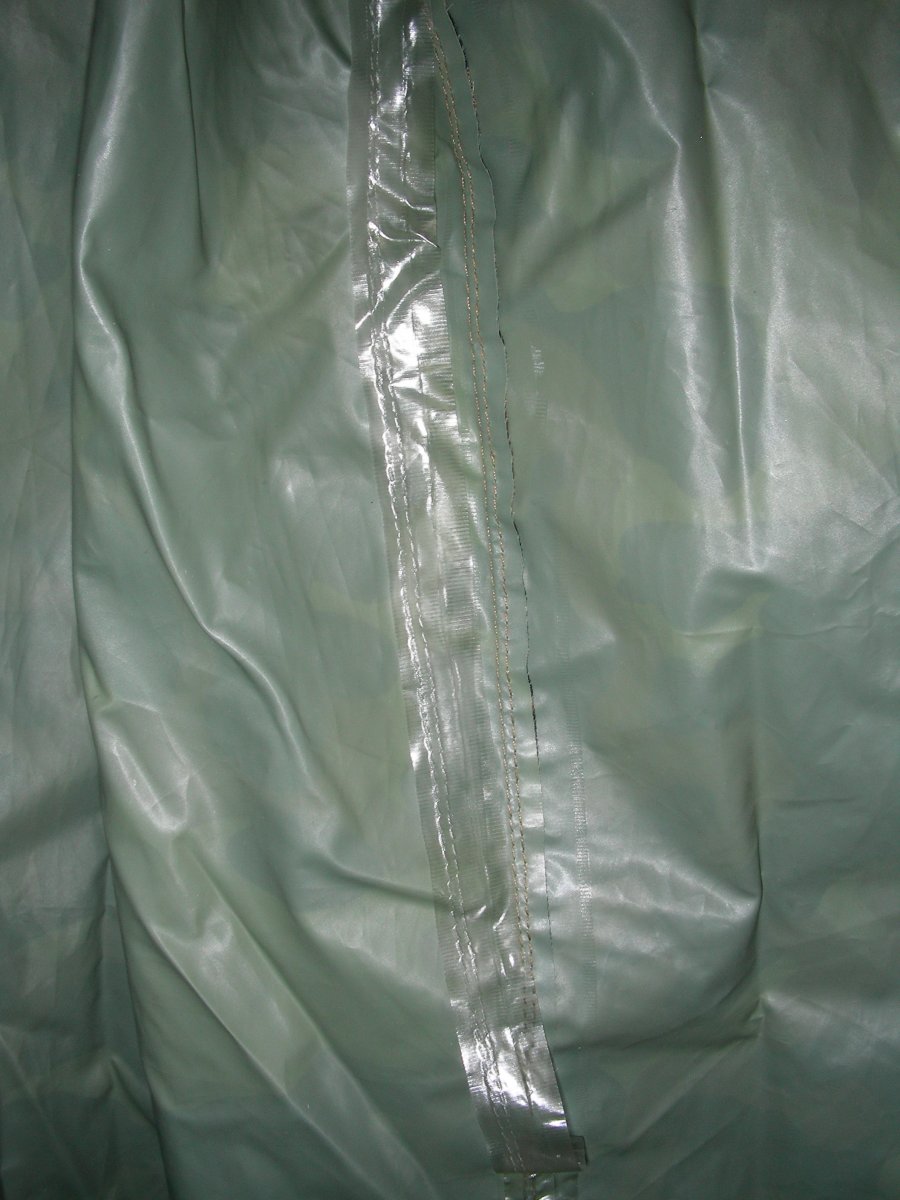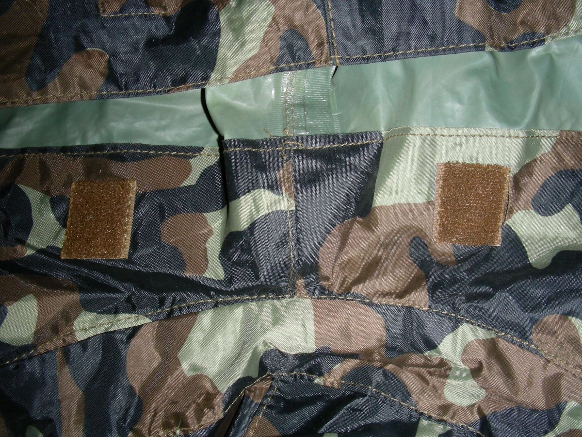 Капюшон, прорези для рук, закрывает ноги полностью, застёгивается на кнопки, капюшон может застёгиваться на липучки под воротник. Сумку-чехол – отсутствует.