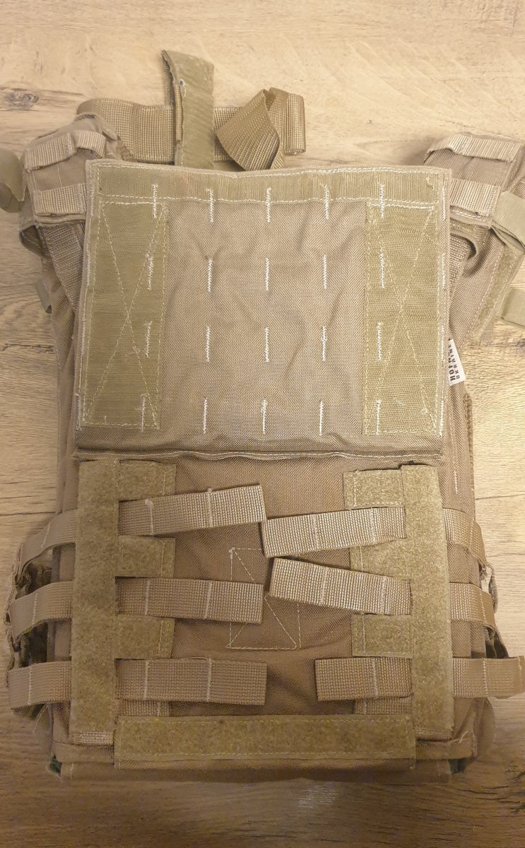 Данный чехол для бронепластин имеет систему крепления MOLLE, что позволяет удобно размещать снаряжение в зависимости от выполняемых задач. Чехол может быть укомплектован плитами размером 30 х 25 см. Тыльная часть жилета имеет подкладку из ЗD сетки для дополнительной вентиляции. Боковые стяжки сделаны из эластичных строп, а на спине установлена эвакуационная ручка длиной 62 см., которая складывается во внутрь спинки. Изделие регулируется по росту и объему и оборудовано петлей быстрого сброса.