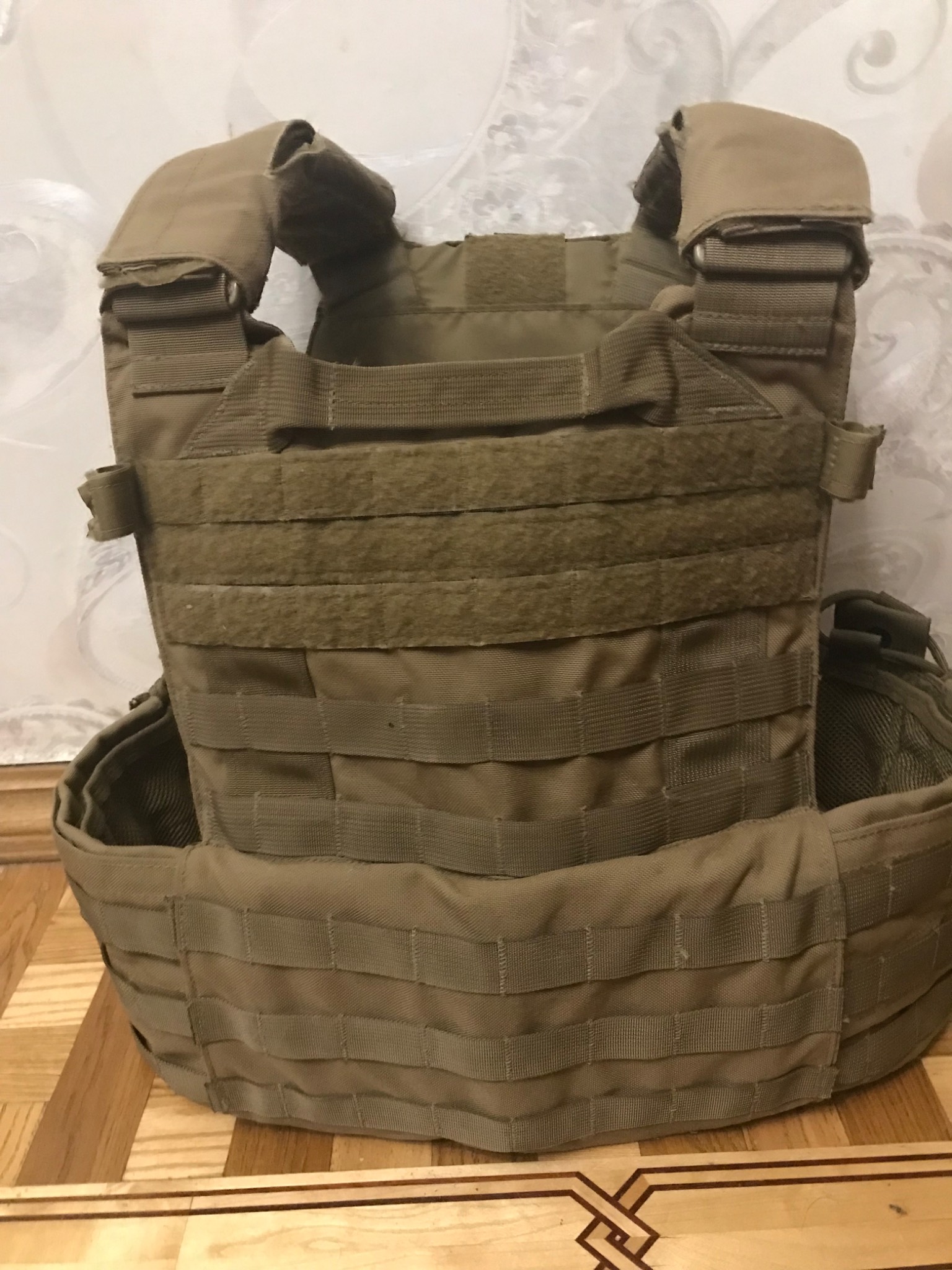 - внутренней стороны бронежилет Plate Carrier имеет крепления на велкро основе для подсоединения дополнительной мягкой брони на плечи и воротник (к примеру, дополнительный бронекомплект LBT-2540KIT)