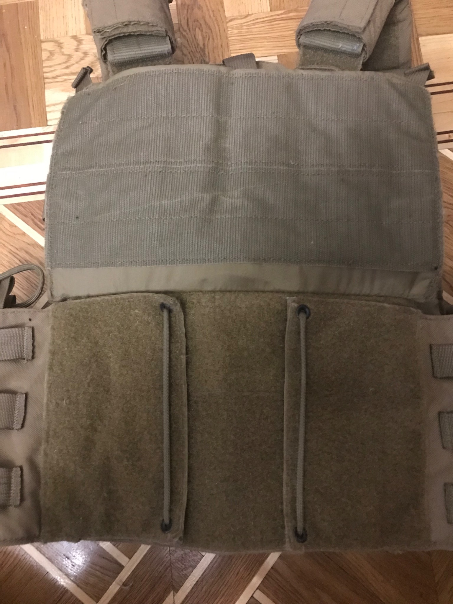 - Эта многофункциональная фронтальная часть позволяет разместить дополнительное снаряжение как: тангента, PTT, GPS, панель HALO (для высотных затяжных прыжков с парашютом), химические источники света, шланг питьевой системы и т.д. А так же организовать провода гарнитур и антенн четырьмя направляющими петлями на велкро застёжках