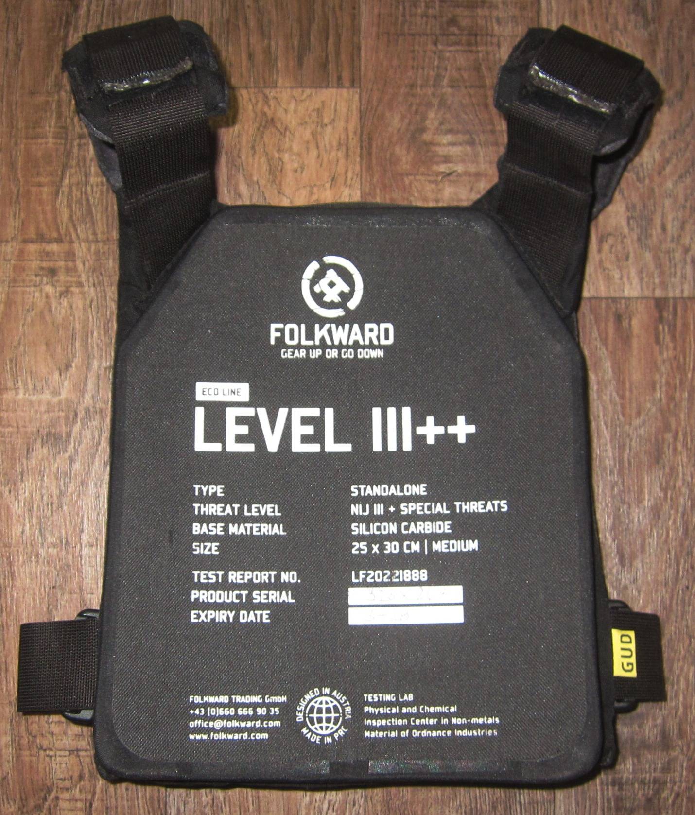 Плитоноска з австрійськими бронеплитами Folkward. Високий клас захисту ІІІ++ (аналог 5 класу по ДСТУ). Вага одної плити всього 2,6кг! Стан відмінний.
