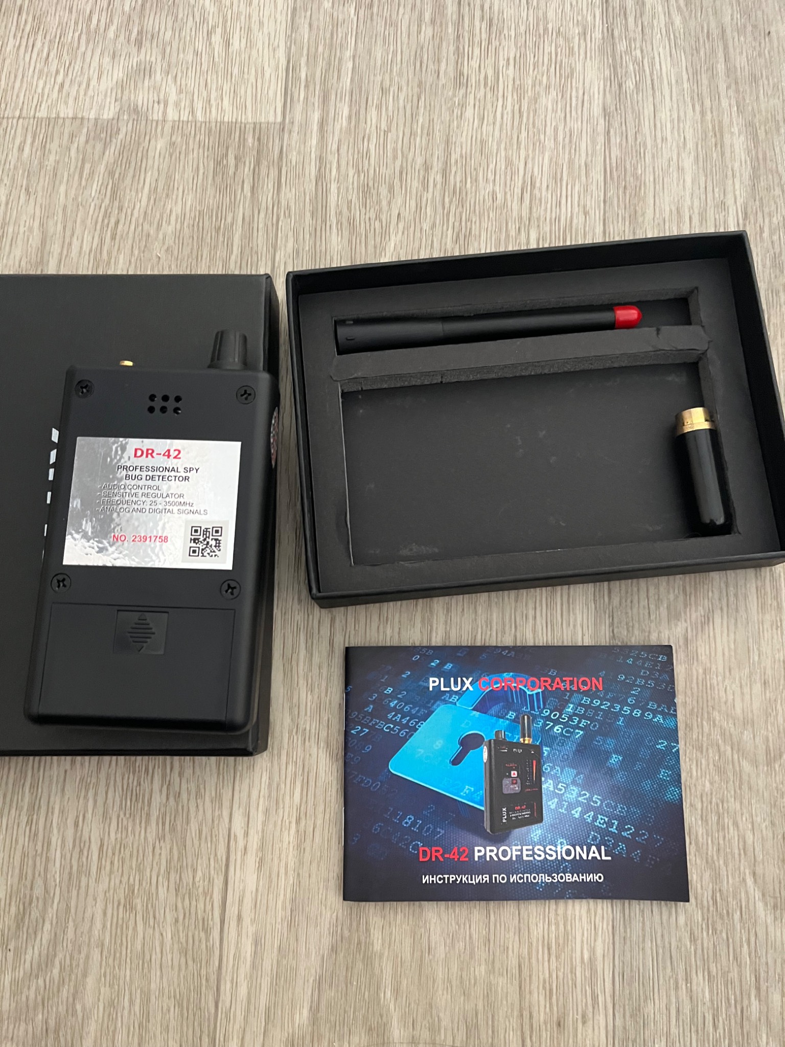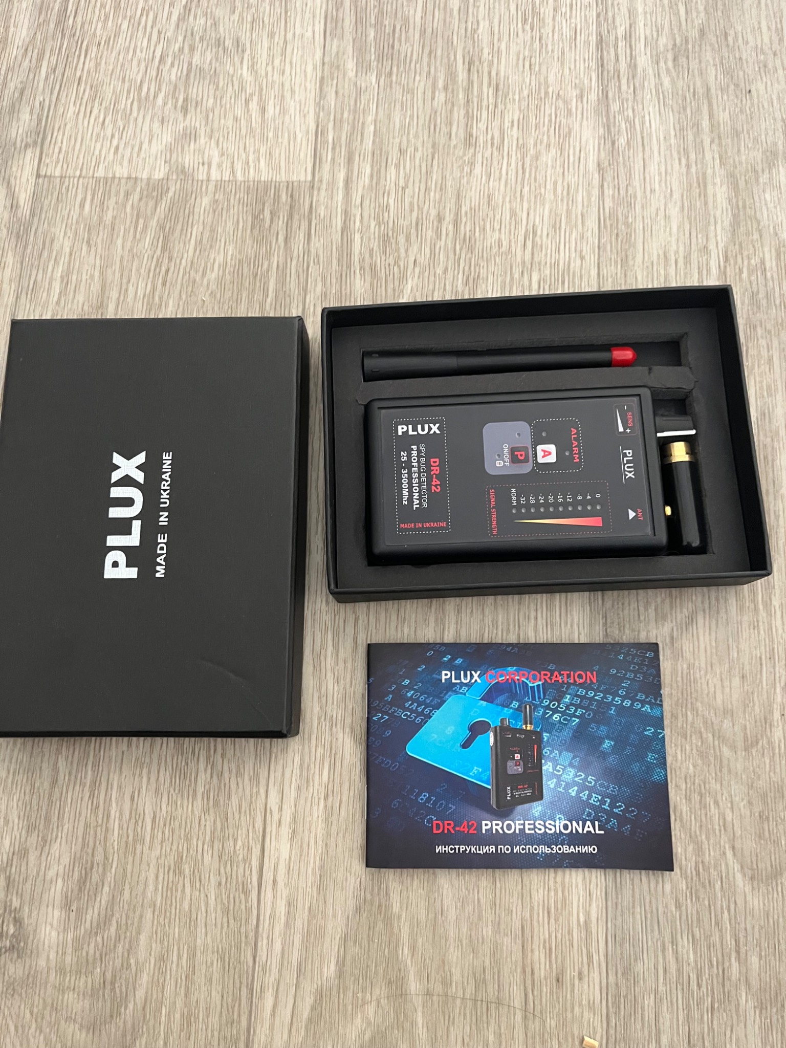 Детектор жучків і трекерів Plux DR-42 PRO призначений для швидкого виявлення будь-якого типу шпигунських пристроїв, які працюють по радіоканалу: GSM-жучків, аналогових або цифрових жучків, бездротових радіокамер (Wi-Fi), GPS-трекерів в автомобілі, радіомікрофонів, рацій тощо.