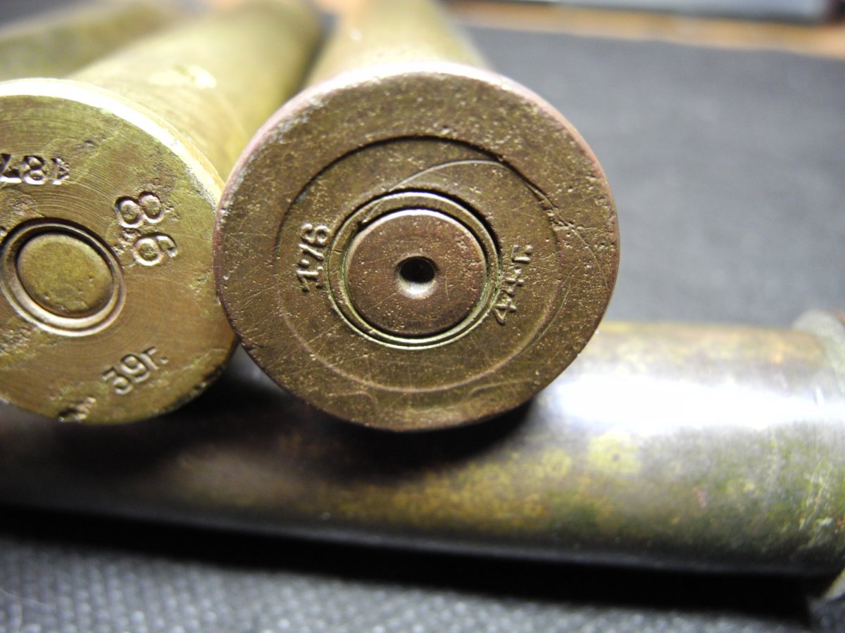На одной гильзе на дульце присутствует небольшая трещинка (на фото отображена). Маркировка на донцах гильз четкая (смотрите макро-фото).